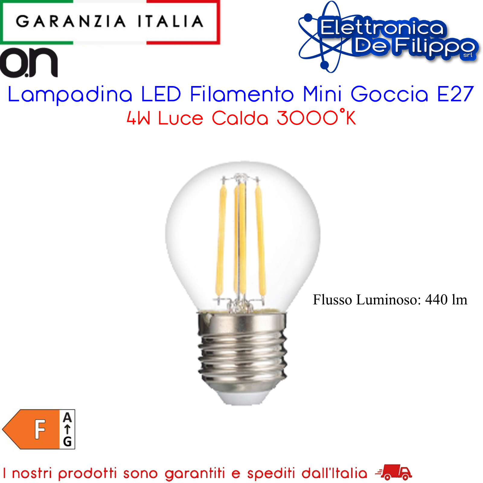 Lampadina LED Filamento Mini Goccia E27 4W Luce Calda 3000°K
