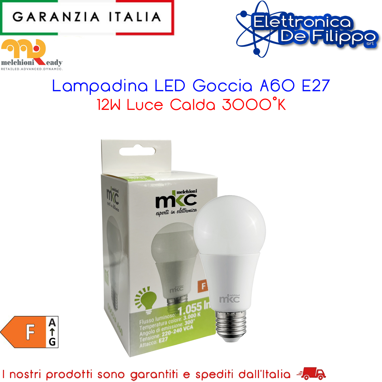 Lampadina LED Goccia A60 E27 12W Luce Calda 3000°K