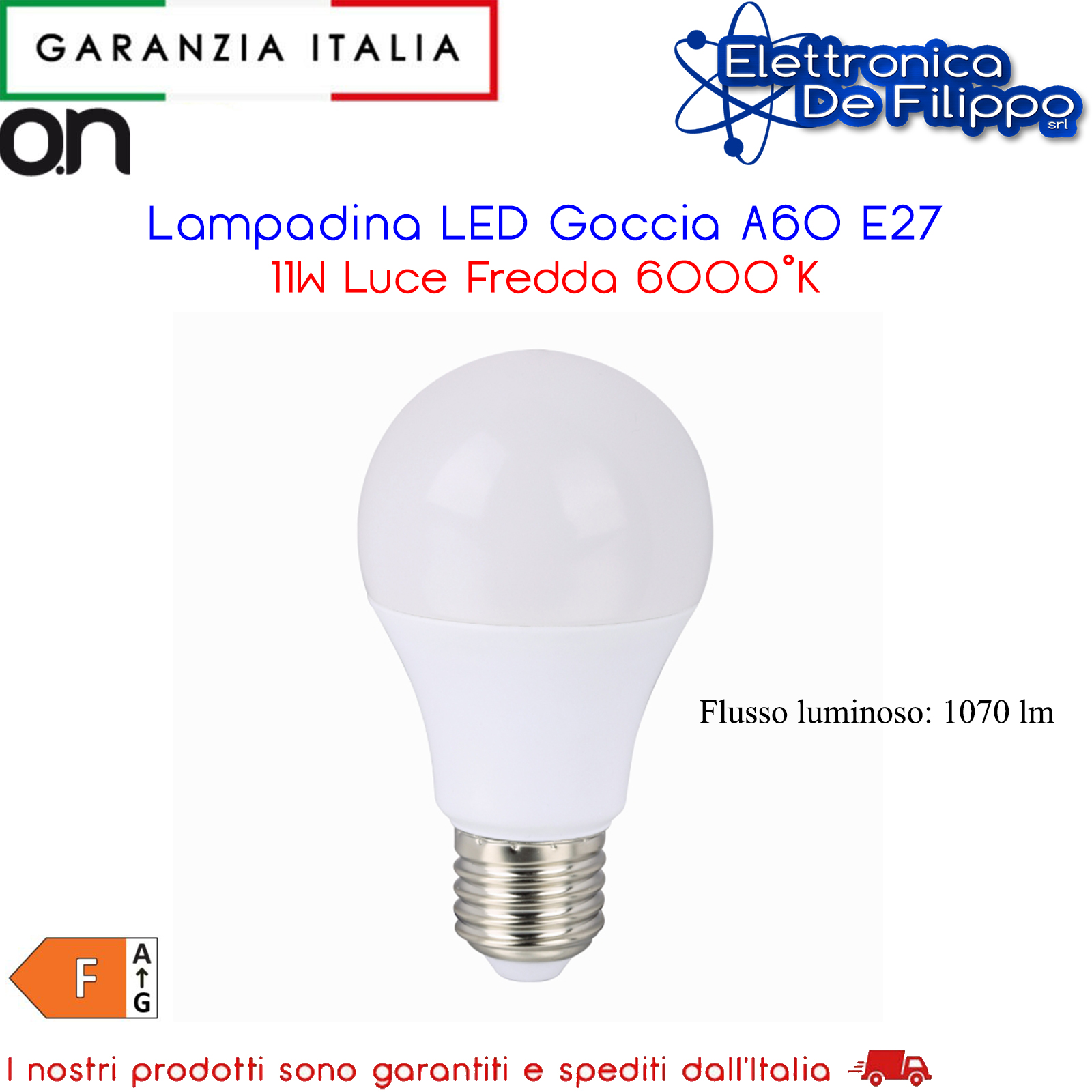 Lampadina LED Goccia A60 E27 11W Luce Fredda 6000K