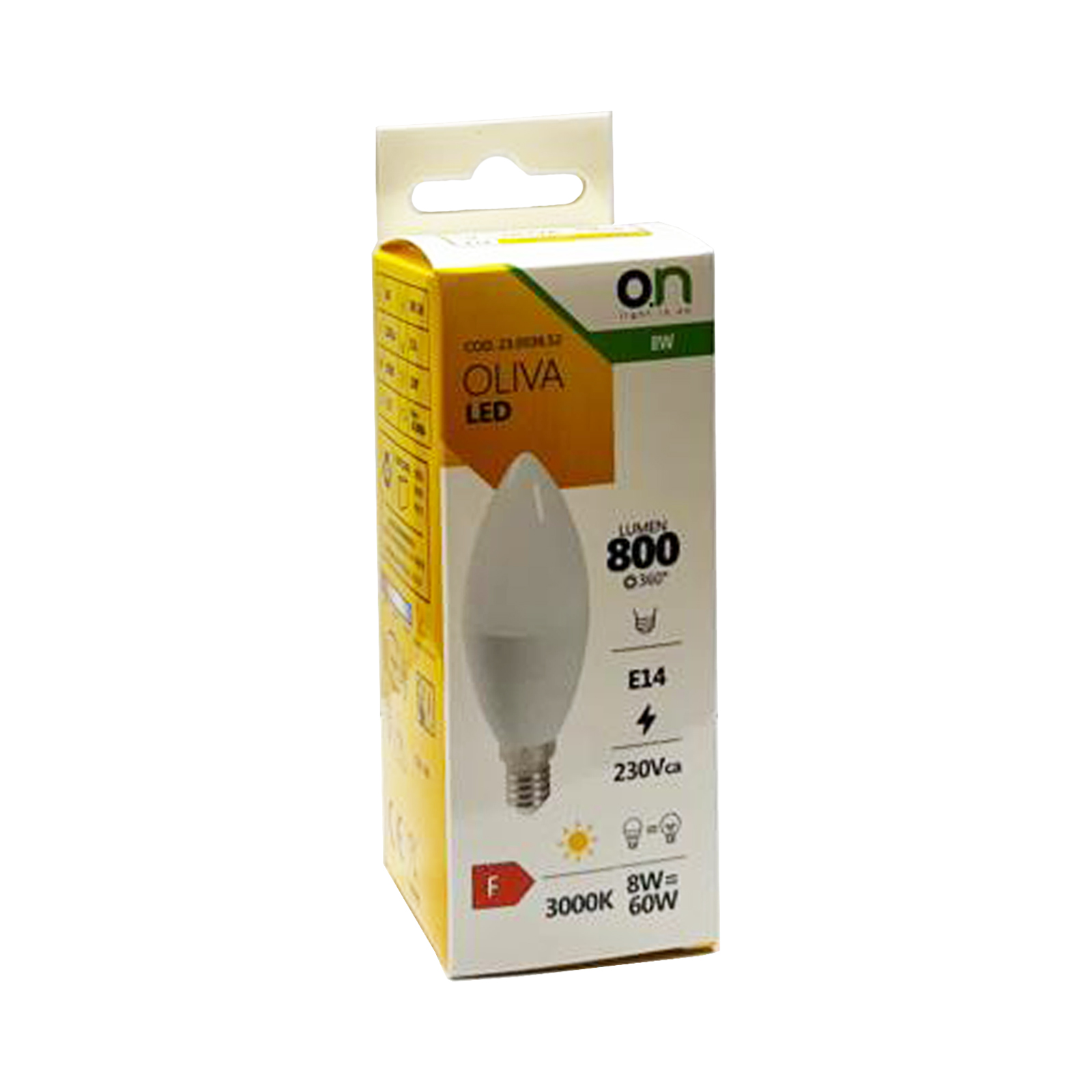 Lampadina LED Oliva E14 8W Luce Calda 3000°K