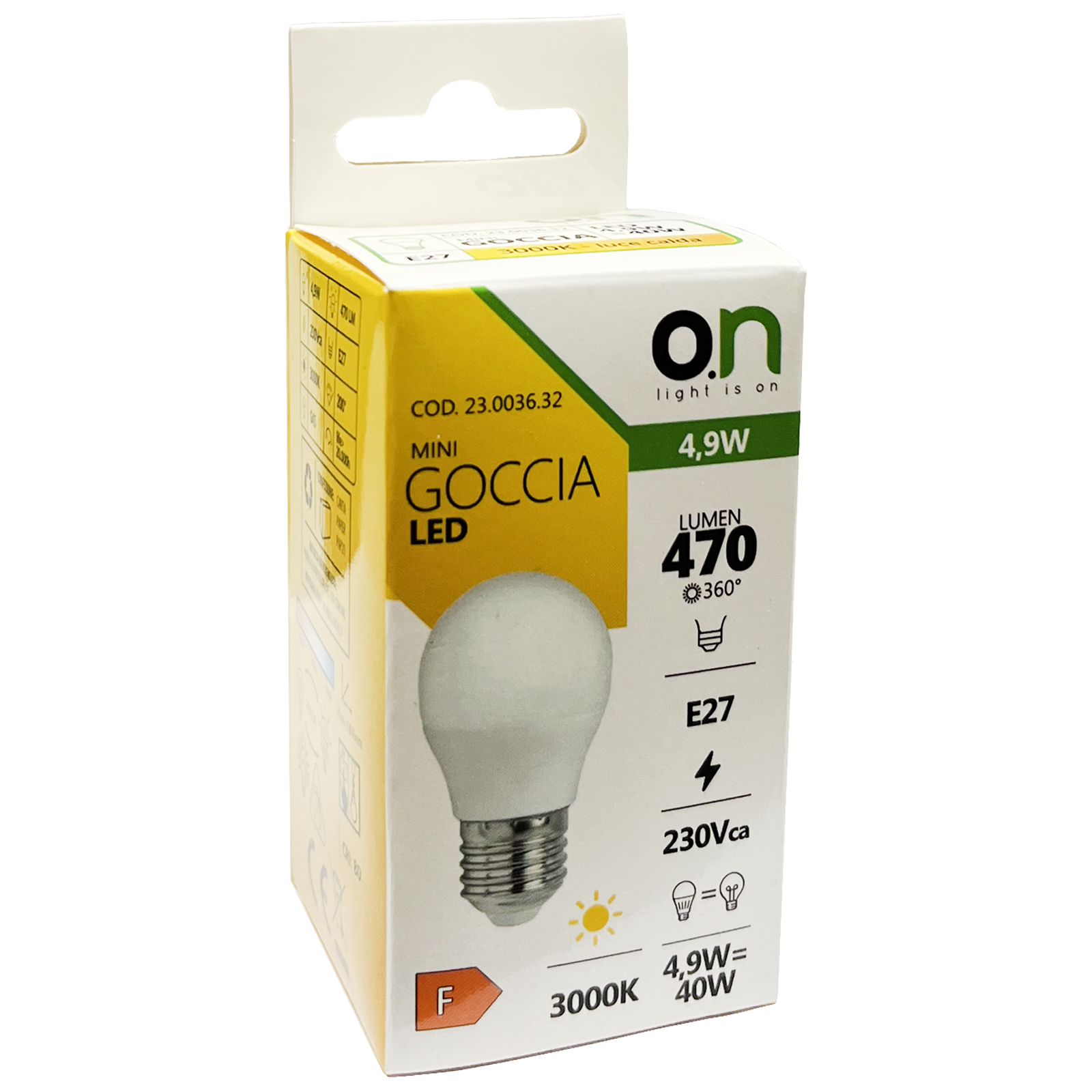 Lampadina LED Mini Goccia G45 E27 4,9W Luce Calda 3000°K