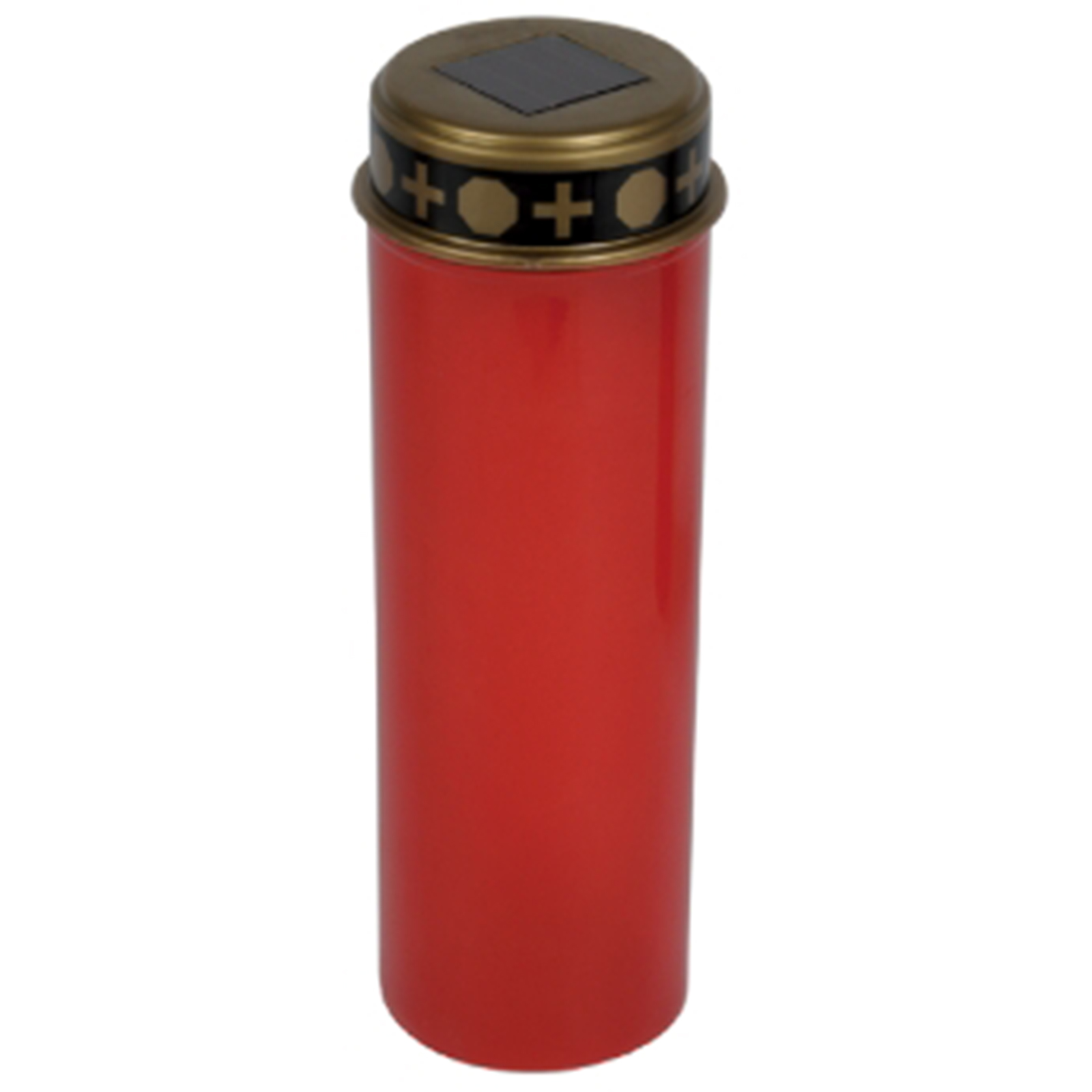 Lumino elettronico da cimitero altezza 21cm x 6.8cm di diametro a luce rossa fissa. Con tasto ON/OFF per accension e batterie incluse 1xAAA 1,2V NI-MH 600mah alimentate da pannello solare integrato