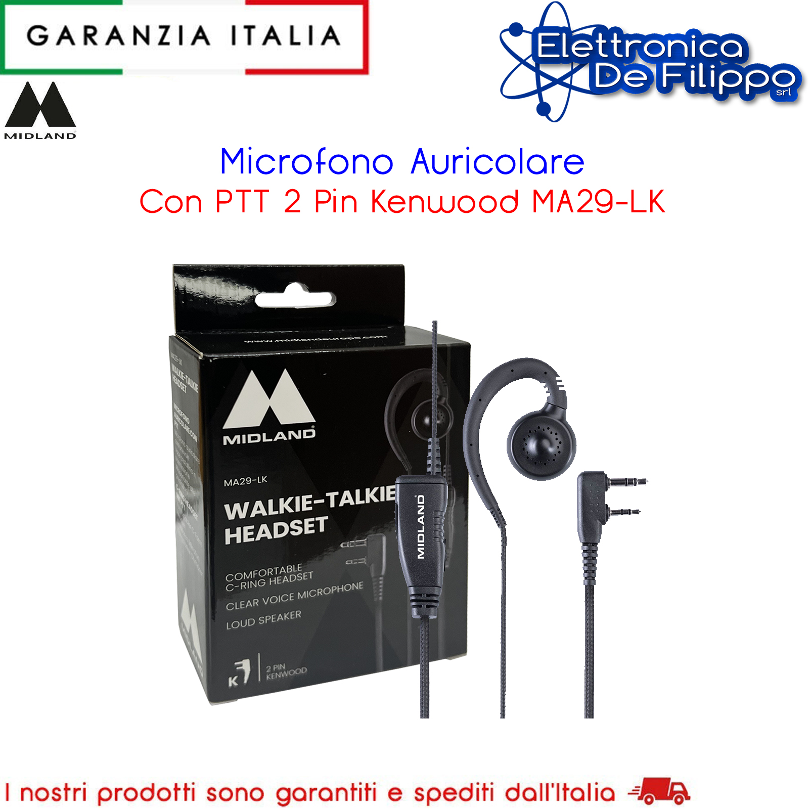 L'auricolare in morbido plastica C-Ring offre comfort ed eleganza per un uso prolungato durante tutta la giornata. Il modello MA-29 è progettato per essere indossato su entrambe le orecchie, garantendo igiene. Il pulsante PTT (Push-To-Talk) integrato facilita la comunicazione anche quando la radio non è immediatamente accessibile. Il microfono ad alta sensibilità con filtro antirumore e l'altoparlante HD assicurano una comunicazione chiara e forte anche in ambienti rumorosi, mentre il cavo in fibra intrecciata previene l’aggrovigliamento.