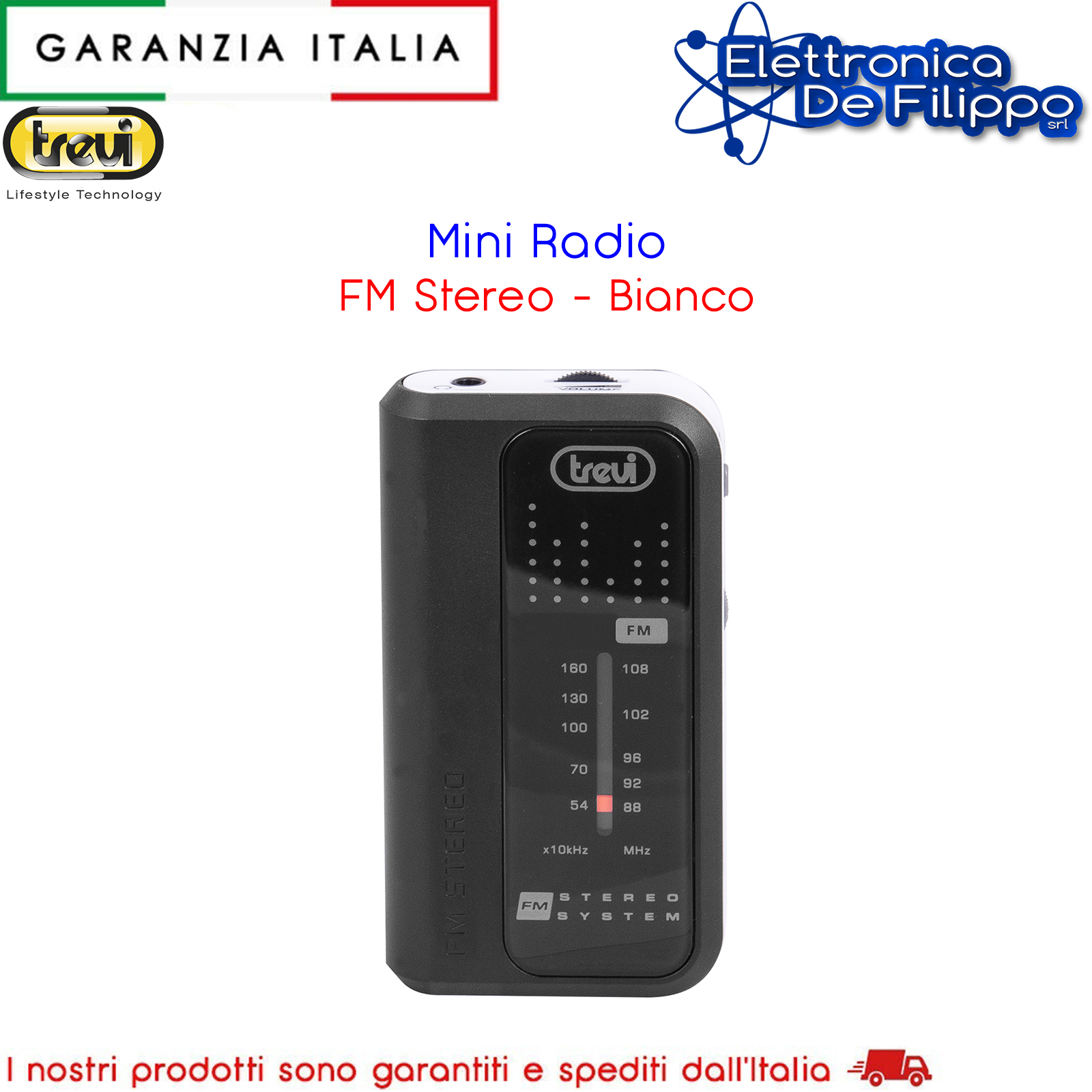 Mini radio portatile Fm Trevi RA 738 S, con cuffie in dotazione, ideale per ascoltare la tua musica preferita ovunque vorrai. Comoda clip di aggancio e cornice colorata, completano questa piccola e versatile radio stereo. Funziona con 2 batterie AAA (non incluse)