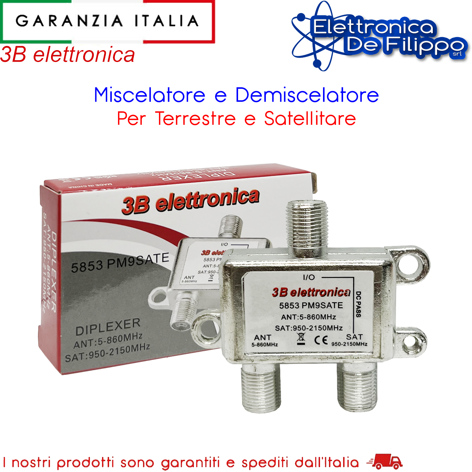 Miscelatore e demiscelatore TV - SAT in classe A a bassa perdita d'inserzione. Con passaggio tono 22kHz e passaggio di corrente