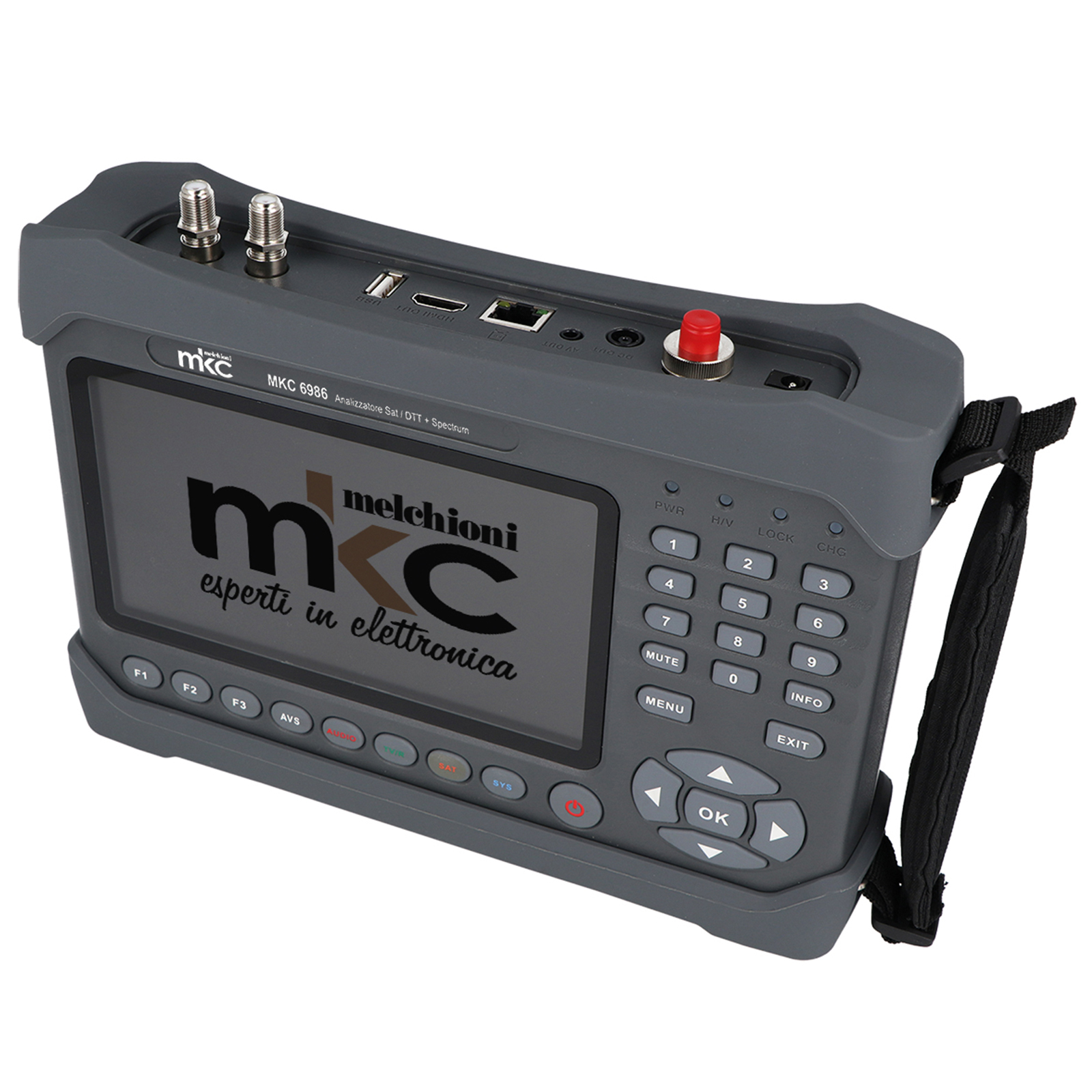 Utile per le misurazioni di segnali TV/SAT permettendo di analizzare segnali DVB-T/T2, DVB-S/S2/S2X e DVB-C con massima codifica H.265/HEVC @10bit. Permette anche la misura su fibra ottica, riproduzione file multimediali, e il puntamento delle telecamere analogiche.