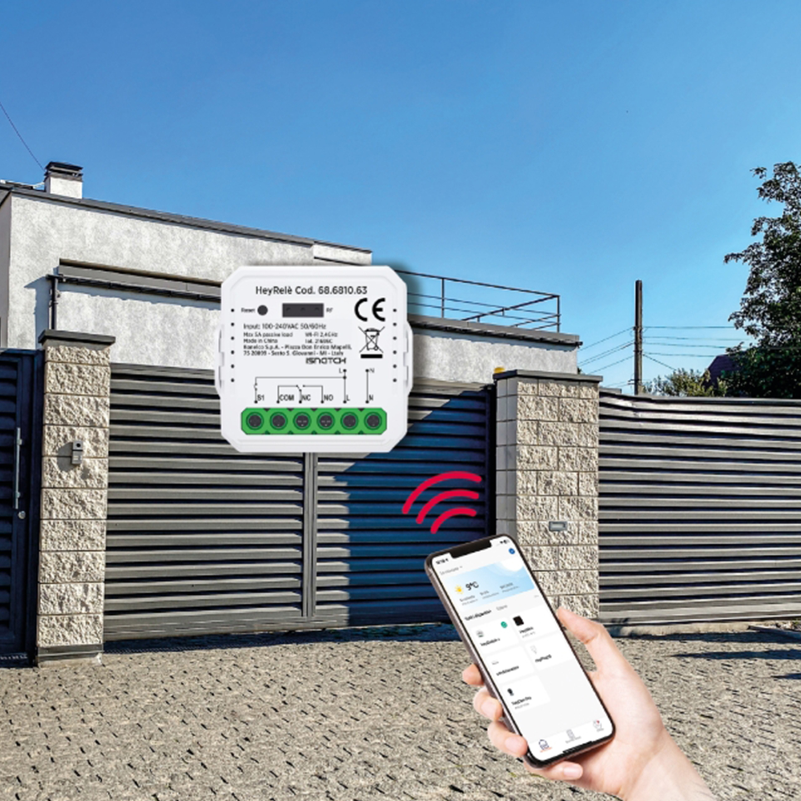 HeyRelé è un modulo domotico avanzato, che incorpora un relé a contatto pulito. Gestisce con precisione e sicurezza una vasta gamma di sistemi elettrici come illuminazione, attuatori, pompe, centraline di motori ed elettro-serrature. Con la sua versatilità, puoi gestire e automatizzare qualsiasi dispositivo o sistema per renderlo smart. Alimentato a 230V e dotato di un ingresso per il controllo manuale tramite pulsante, installabile su binario DIN (supporto incluso) o incasso, HeyRelé diventa un'aggiunta essenziale alla tua casa intelligente. Collegalo alla rete Wi-Fi e tramite l'app HeySmart, controlla e gestisci l'azione del contatto relé da remoto. Puoi impostare per esempio la durata dell'apertura di un cancello con elettro-serratura per l'arrivo dell'addetto alle pulizie o al ritorno dei figli a casa, quindi programmando il timer per aprire o chiudere il contatto in base alle tue esigenze. Compatibile con assistenti vocali come Amazon Alexa e Google Home.
