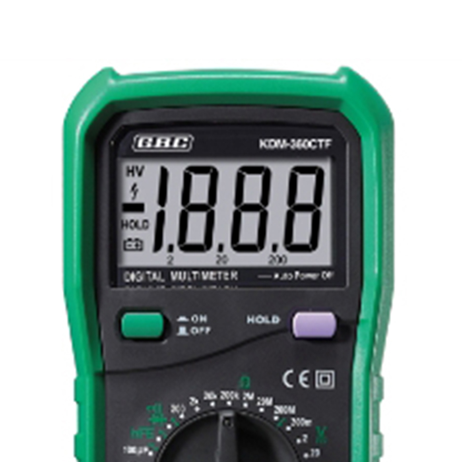 Display LCD 24mm 3 ½ digit, 2000 counts. Dotato di circuiti di protezione da sovraccarichi; spegnimento ed indicazione di polarità automatici. Indicazione di batteria scarica e di fuori-scala. Corredato di puntali di prova, termocoppia e adattatore per prova temperatura e transistor.