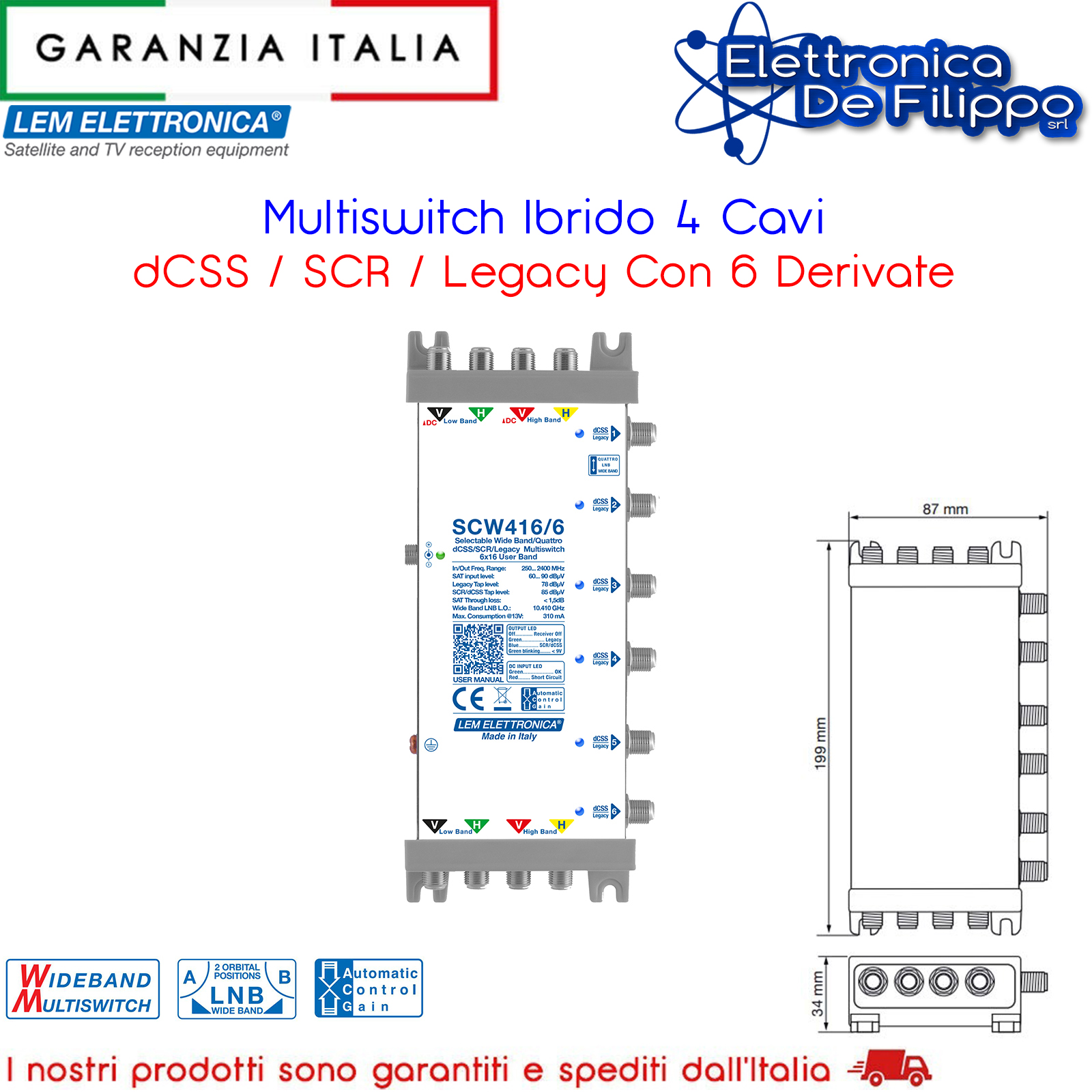 Multiswitch Ibrido Con 4 Cavi dCSS / SCR / Legacy Con 6 Derivate