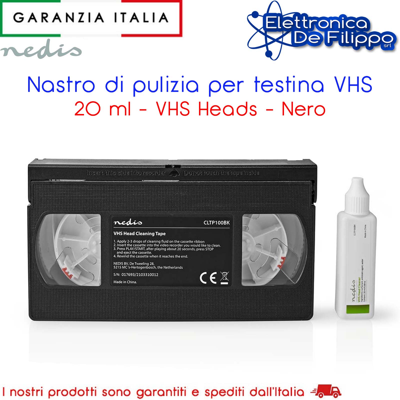Questo nastro di pulizia per testina VHS Nedis garantisce un funzionamento ottimale e una durata più lunga al tuo videoregistratore. È essenziale per mantenere pulite le testine VHS e ottenere immagini e audio nitidi. Il flacone di detergente di alta qualità da 20 ml ti offre un modo sicuro ed efficace per continuare a guardare i tuoi film.