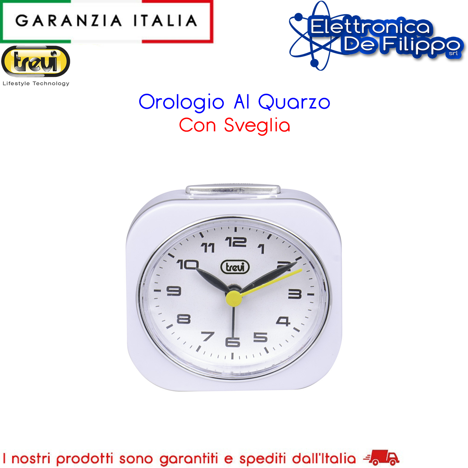 Con l’Orologio al Quarzo con Sveglia Trevi SL 3056 potrai facilmente scandire i momenti della tua giornata ed evitare di incorrere in spiacevoli ritardi. La presenza del movimento silenzioso Sweep a secondi continui, rende SL 3056 adatta agli ambienti in cui la silenziosità è più gradita, come la camera da letto, per riposare senza il fastidioso ticchettio delle lancette in sottofondo. L’ampio quadrante si illumina per permettere una consultazione dell’orologio anche nelle ore notturne. La sveglia di Trevi consente di impostare una sveglia, che si attiverà all’orario da te indicato con suoneria elettronica con suono Crescente e che potrai comodamente interrompere grazie al tasto dedicato oppure posporre con la funzione Snooze. L’Orologio al Quarzo con Sveglia Trevi SL 3056 è alimentata da una batteria di tipo "AA" (non inclusa).
