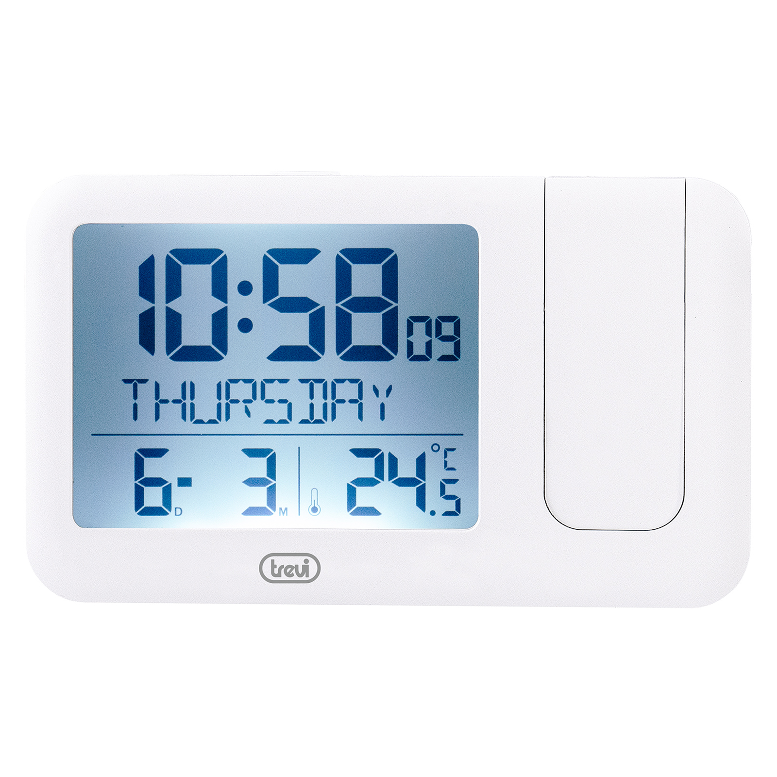 Grazie alla retroilluminazione bianca del display dell'orologio digitale di Trevi, tutte le informazioni sono sempre nitide e leggibili, sia di giorno che di notte, senza essere fastidiose. Ma Trevi PJ 3030 è molto più di un semplice orologio digitale: è il tuo alleato quotidiano per rimanere sempre informato con precisione su orario , calendario e temperatura ambientale , sia in gradi Celsius (°C) che Fahrenheit (°F). Inoltre, per iniziare la giornata nel modo giusto, potrai impostare una sveglia con suoneria programmabile che ti garantirà un risveglio puntuale e personalizzato.