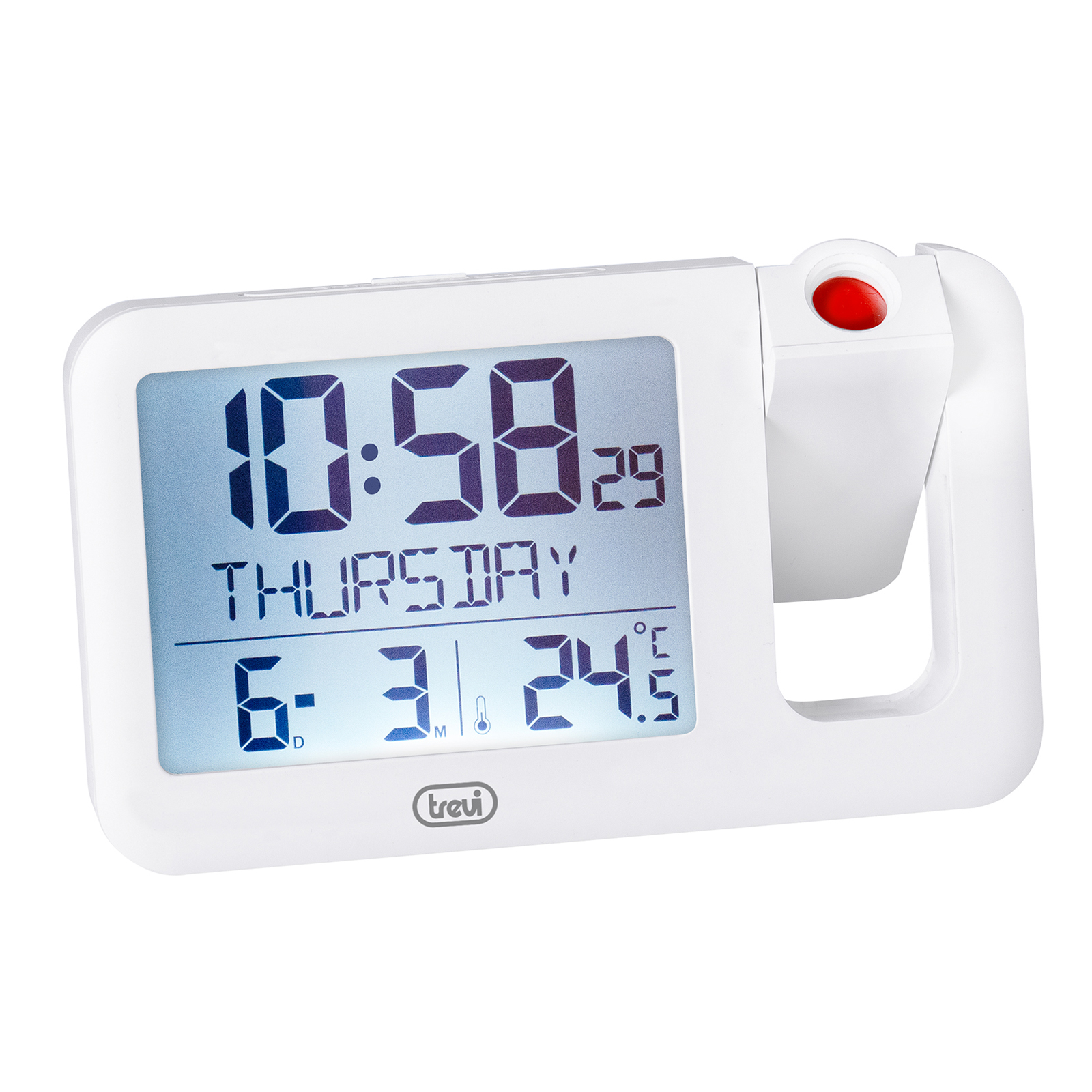 L'Orologio Digitale con Proiezione dell'Orario Trevi PJ 3030 è la soluzione perfetta per chi cerca un orologio proiettore affidabile, completo e dal design elegante, capace di rendere ogni tuo risveglio più piacevole e ogni momento della giornata più organizzato. Alimentato da 3 batterie di tipo “AAA” (non incluse) da inserire nell'apposito vano dedicato, non è solo un oggetto, ma un compagno essenziale per la tua routine.