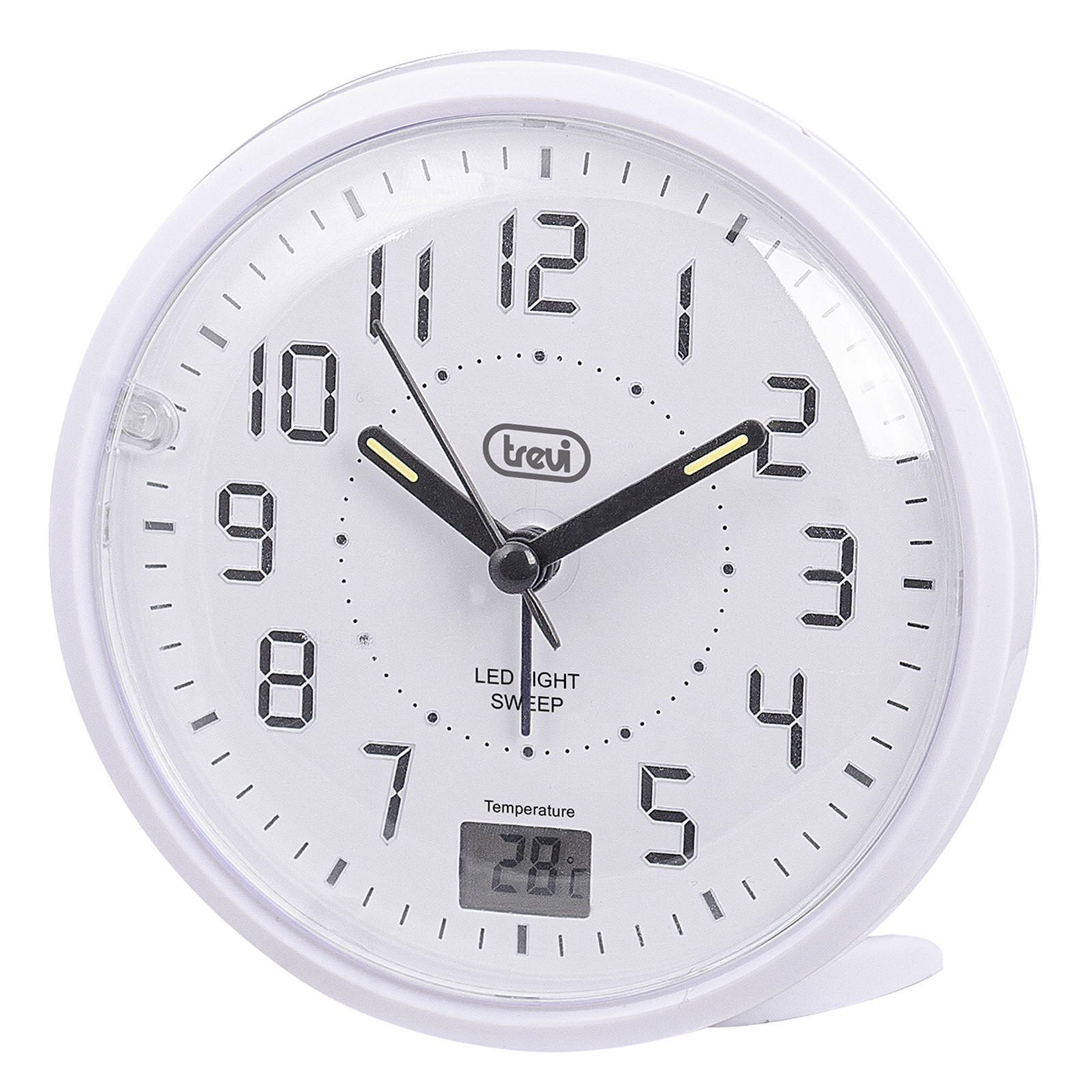 Con l’Orologio al Quarzo con Sveglia Trevi SL 3P27 potrai tenere sempre sotto controllo l’ora ed evitare inutili ritardi. Dotato di movimento silenzioso Sweep a secondi continui, ti garantirà un riposo tranquillo senza il fastidioso ticchettio delle lancette. Sull’orologio di Trevi puoi impostare una sveglia, che si attiverà con una suoneria elettronica, all’orario da te preferito e, premendo il tasto Snooze sulla parte superiore dell’apparecchio, potrai momentaneamente interrompere l’allarme. La super retroilluminazione a led ti consentirà una facile consultazione di SL 3P27 anche durante le ore notturne. Utile è il piccolo riquadro nella parte inferiore del quadrante, in cui puoi trovare la temperatura, per averla sempre sott’occhio e non farti trovare impreparato in caso di cambi repentini. L’alimentazione è predisposta con una batteria di tipo AA (non inclusa).