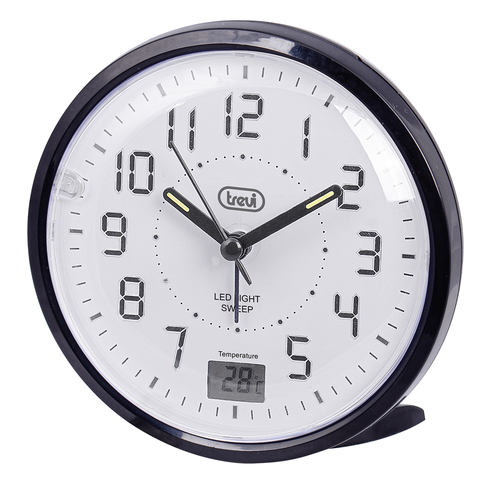 Con l’Orologio al Quarzo con Sveglia Trevi SL 3P27 potrai tenere sempre sotto controllo l’ora ed evitare inutili ritardi. Dotato di movimento silenzioso Sweep a secondi continui, ti garantirà un riposo tranquillo senza il fastidioso ticchettio delle lancette. Sull’orologio di Trevi puoi impostare una sveglia, che si attiverà con una suoneria elettronica, all’orario da te preferito e, premendo il tasto Snooze sulla parte superiore dell’apparecchio, potrai momentaneamente interrompere l’allarme. La super retroilluminazione a led ti consentirà una facile consultazione di SL 3P27 anche durante le ore notturne. Utile è il piccolo riquadro nella parte inferiore del quadrante, in cui puoi trovare la temperatura, per averla sempre sott’occhio e non farti trovare impreparato in caso di cambi repentini. L’alimentazione è predisposta con una batteria di tipo AA (non inclusa).