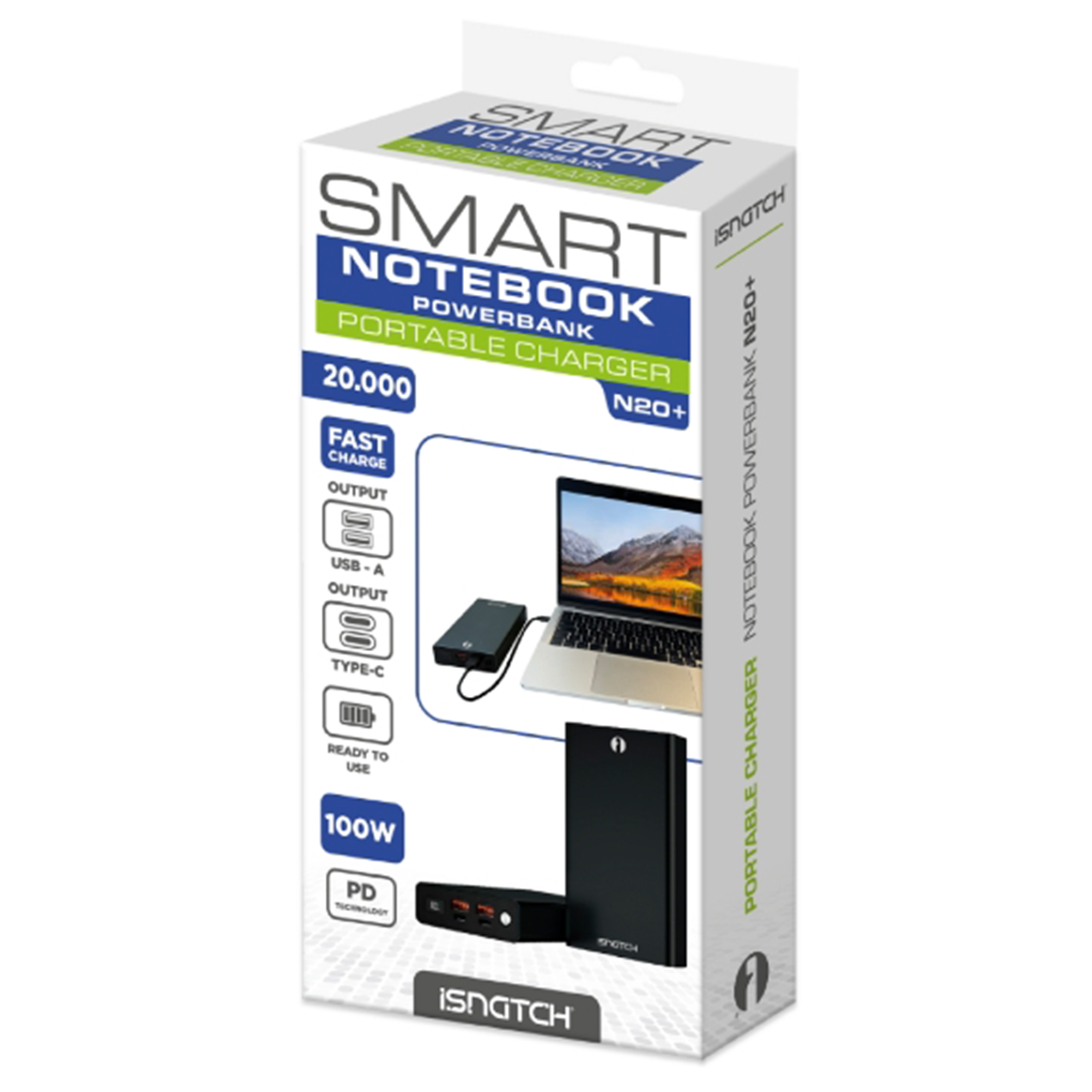 Il Power bank della famiglia N20+ con la porta USB-C bidirezionale che può essere utilizzata sia come ingresso che come uscita e può erogare fino a 100W con il cavo USB-C incluso, in modo da poter alimentare il vostro Notebook e in grado di caricare fino all'80% in soli 60 minuti. il caricabatterie portatile è certificato e protegge i dispositivi da sovraccarico, surriscaldamento e cortocircuito. Completamente compatibile con la maggior parte dei dispositivi alimentati da USB C e USB A, pd 100W.
