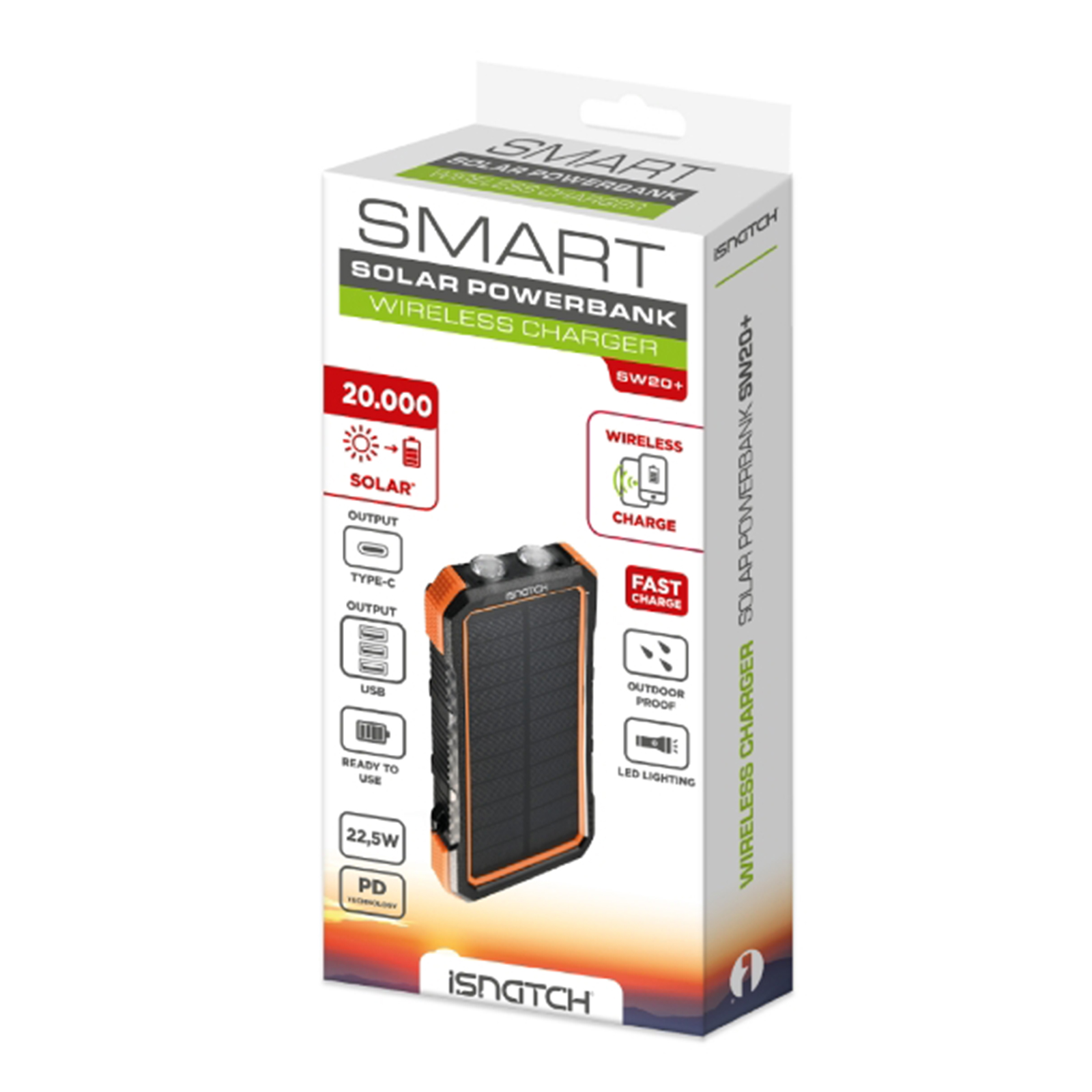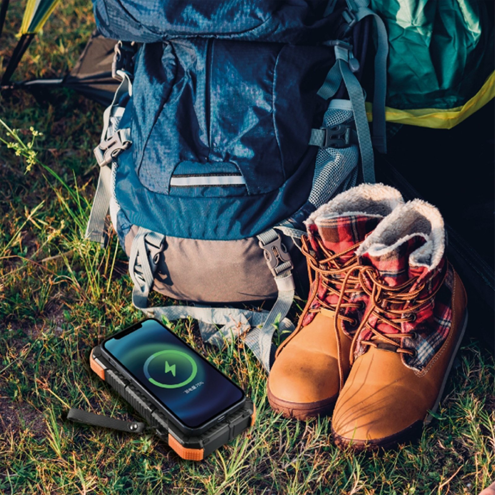 3 porte USB con funzione PD più la funzione wireless ti consentono di gestire contemporaneamente 4 differenti dispositivi. Puoi caricare completamente il tuo power bank tramite la porta USB . La ricarica solare garantisce che il dispositivo sia costantemente acceso anche in caso di emergenza. La potente torcia a LED è un compagno perfetto e indispensabile per stare all’aperto. Questo caricatore solare supporta tutti i telefoni con funzionalità di ricarica wireless. Basta posizionare il telefono al centro della base di ricarica wireless per caricarlo. Attenzione: (La funzione di ricarica solare è destinata solo all'uso di emergenza. Si prega di non utilizzare l'energia solare come principale fonte di ricarica. Si consiglia di caricare completamente il caricatore utilizzando un adattatore di alimentazione alla prima ricarica).