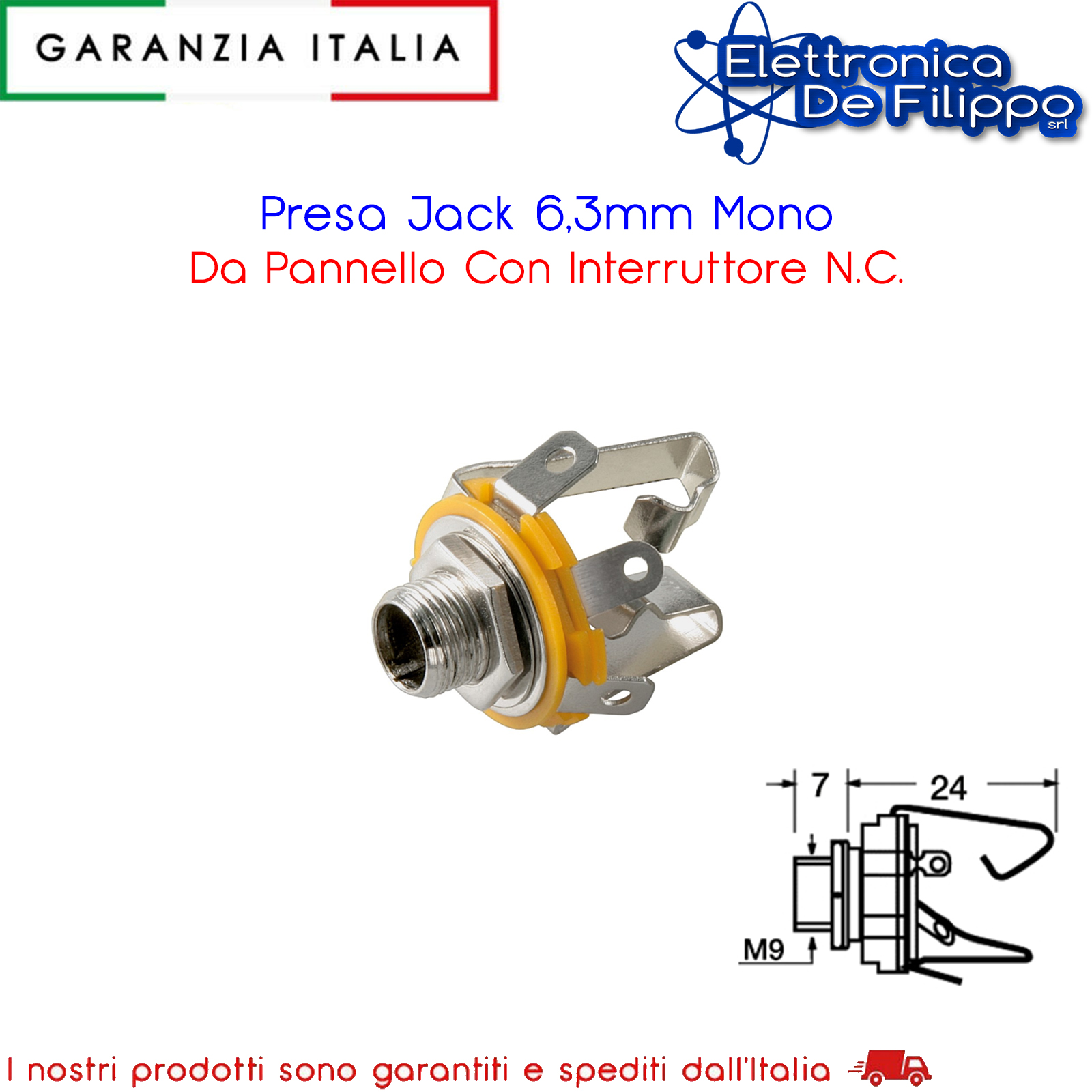 Presa Jack 6,3mm Mono Da Pannello Con Interruttore N.C.