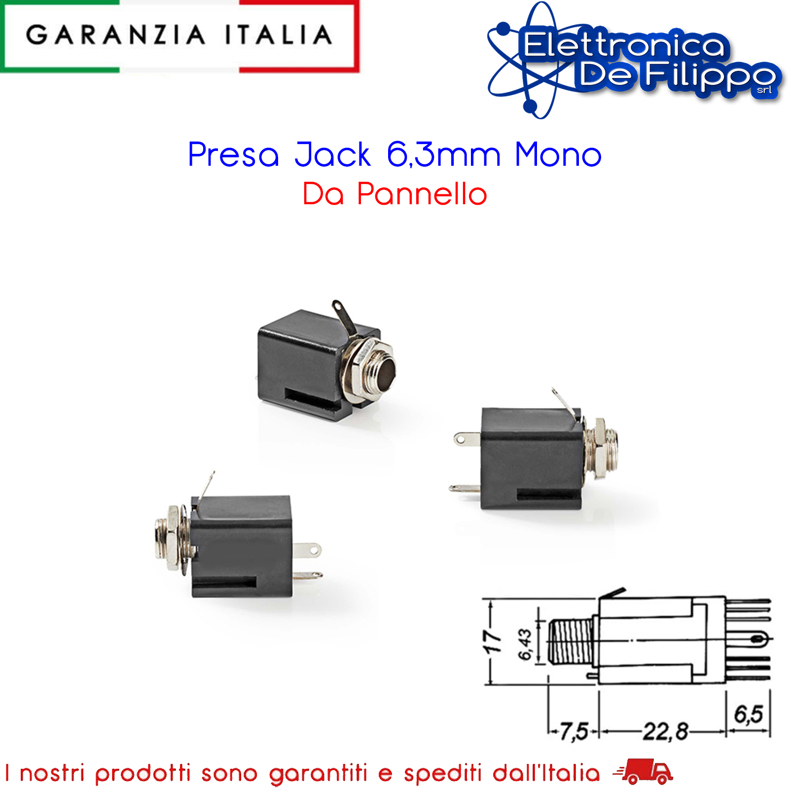 Presa Jack 6,3mm Mono Da Pannello