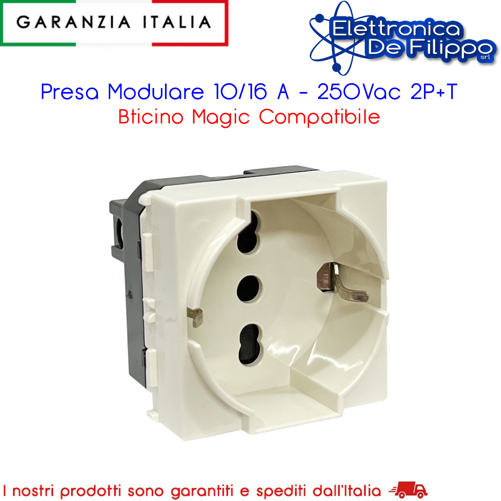 Presa Modulare 10/16 A - 250Vac 2PT Bticino Magic Compatibile Standard Tedesco