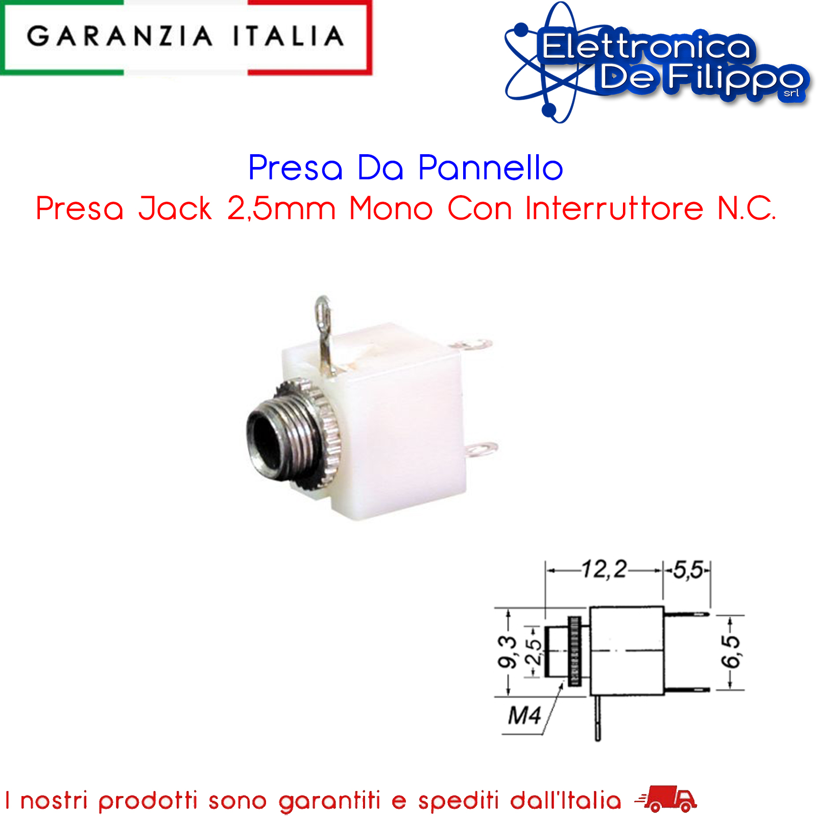 Presa Da Pannello Presa Jack 2,5mm Mono Con Interruttore N.C.