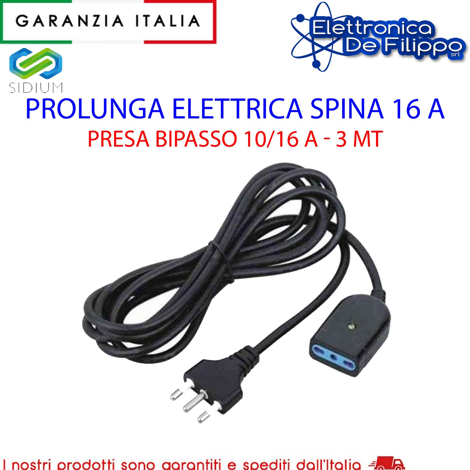 Prolunga Elettrica Spina 16 A - Presa Bipasso 10/16 A - 3 mt - 3 x 1 mmq - Nera