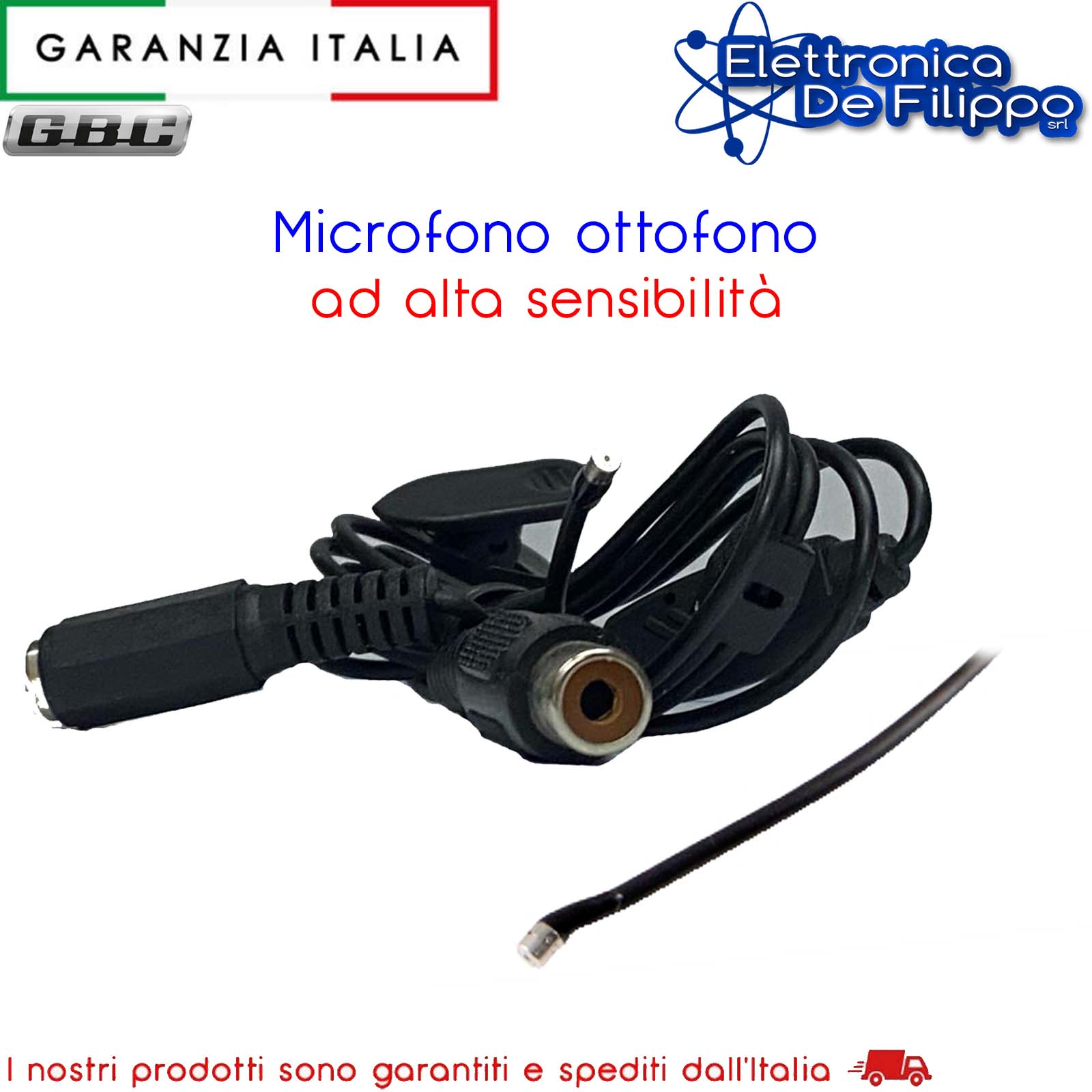 Microfono ottofono a spillo di dimensioni ridottissime, altissima sensibilità percepisce conversazioni a decine di metri.