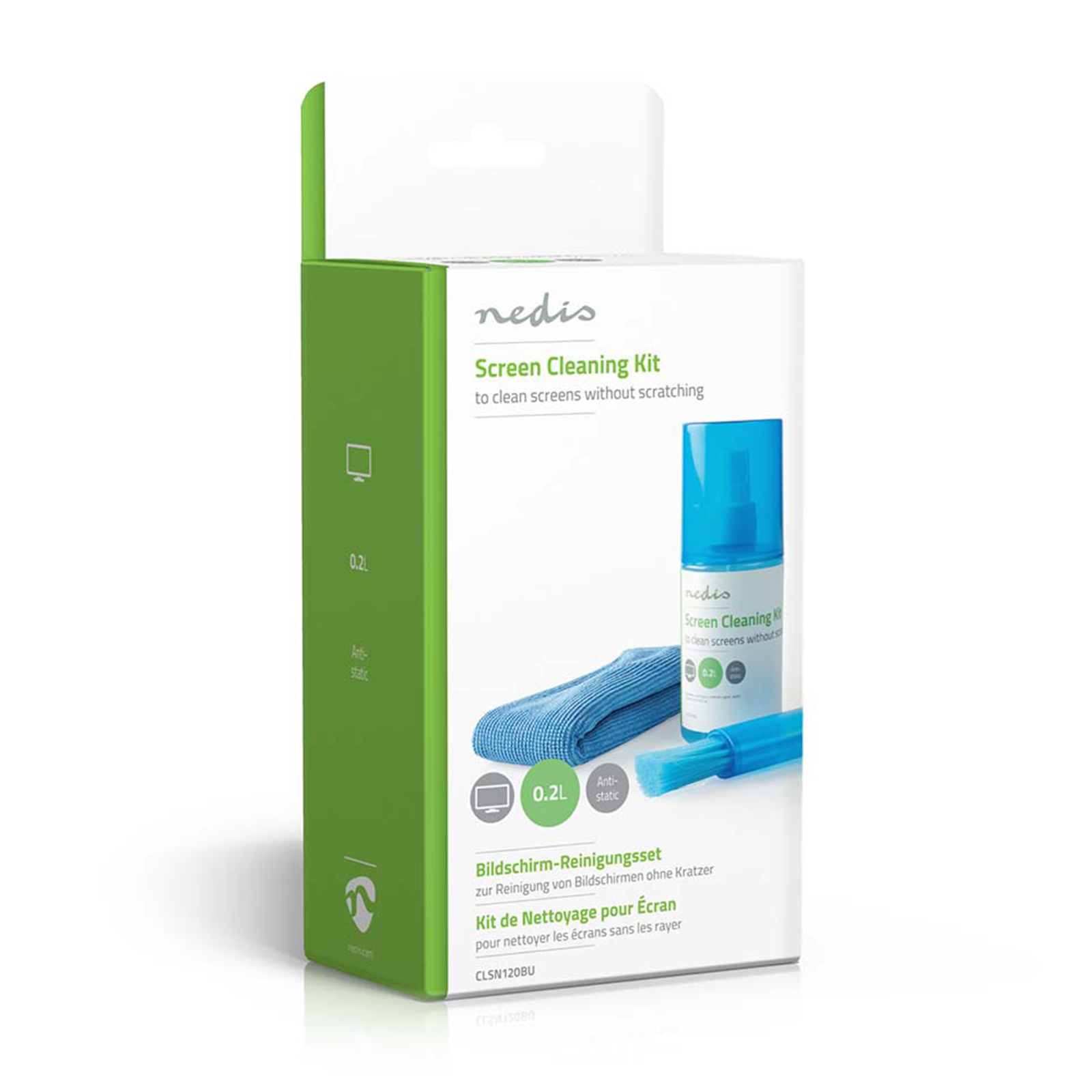 Kit di pulizia antistatico, privo di alcol, per pulire schermi di TV, tablet, smartphone o PC in pochi istanti. Rimuove polvere, impronte e macchie senza graffiare o danneggiare lo schermo.
