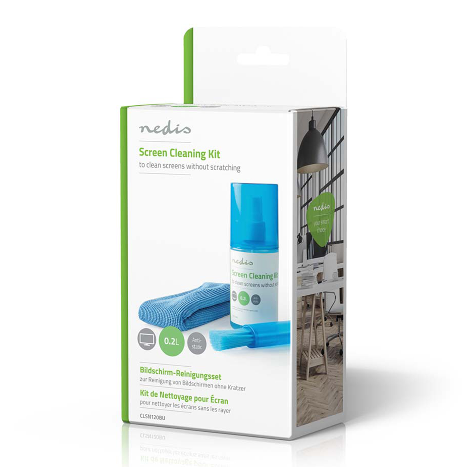 Kit di pulizia antistatico, privo di alcol, per pulire schermi di TV, tablet, smartphone o PC in pochi istanti. Rimuove polvere, impronte e macchie senza graffiare o danneggiare lo schermo.