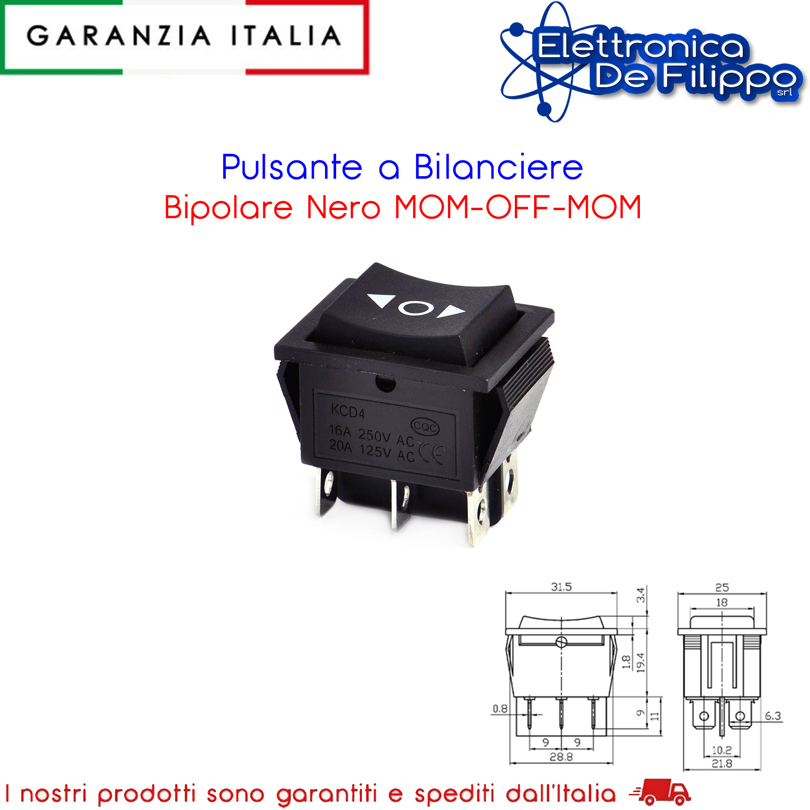 Pulsante a Bilanciere Bipolare Nero MOM-OFF-MOM