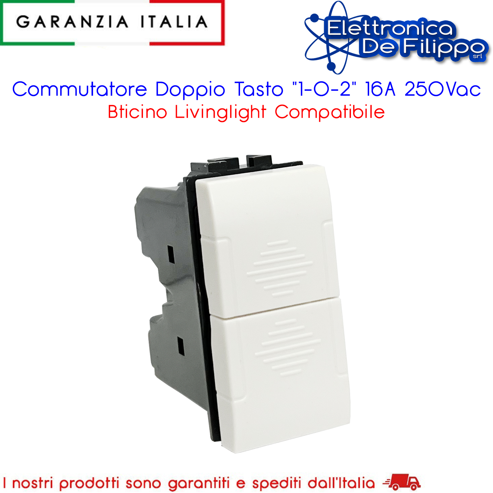 Pulsante Doppio 1P "NO" - 1P "NO" 10A 250Vac Bticino Livinglight Compatibile