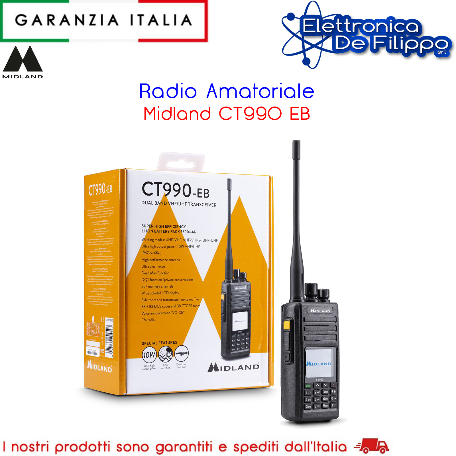 Il CT 990 è un VHF certificato IP67 che ne consente l’utilizzo in condizioni meteo estreme in quanto protetto da polvere ed acqua fino ad un metro di profondit per 30 minuti. Il suo ampio display a colori permette una grande leggibilità grazie alla tecnologia TFT a cristalli liquidi. La versione EB ha una batteria maggiorata da 3600mAh che equivale a circa 30% in più di capacità e di conseguenza di durata. Il precedente modello durava circa 16 ore, con la batteria maggiorata circa 21 ore. Il CT 990 EB come il suo predecessore ha una potenza di 10W e garantisce performance di copertura radio superiore rispetto ad altri apparati della stessa famiglia amatoriale che tipicamente trasmettono a 5W.
