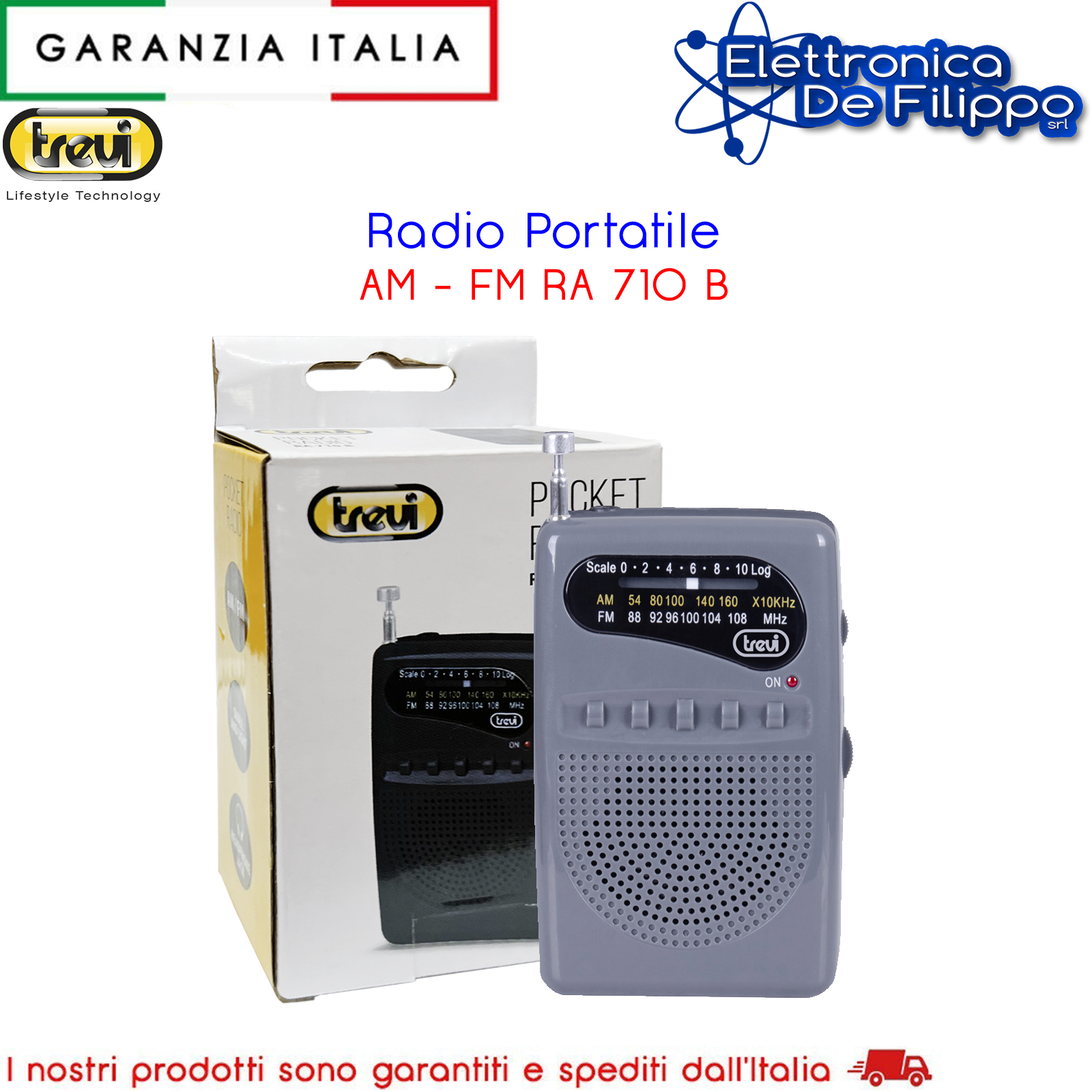 Con la Radio Portatile AM/FM Trevi RA 710 B potrai riprodurre musica in modo davvero originale. Piccola e leggera, puoi portarla sempre con te per sintonizzarti sulle tue frequenze radio preferite che trasmettono in AM o FM e ascoltare brani e notizie radio sia attraverso lo speaker integrato, sia tramite cuffie grazie all’apposita presa. Trevi RA 710 B è alimentata da 2 batterie di tipo “AAA” (non incluse).