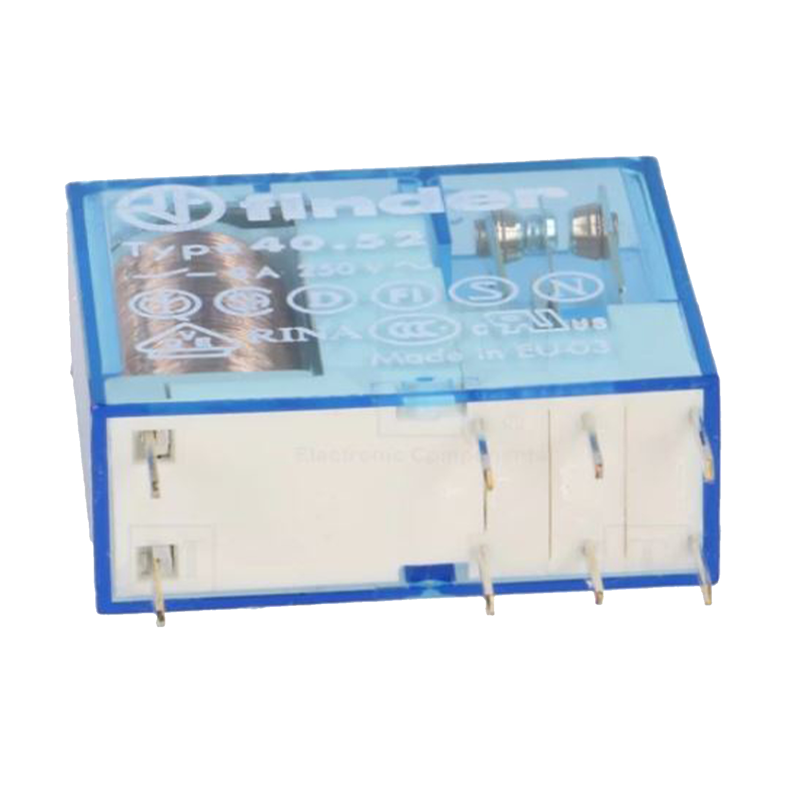 Il mini relè Tipo 40.52 è un relè per circuito stampato ed a innesto su zoccolo Serie 95. Dotato di 2 scambi 8 A su circuito stampato, passo 5.0 mm