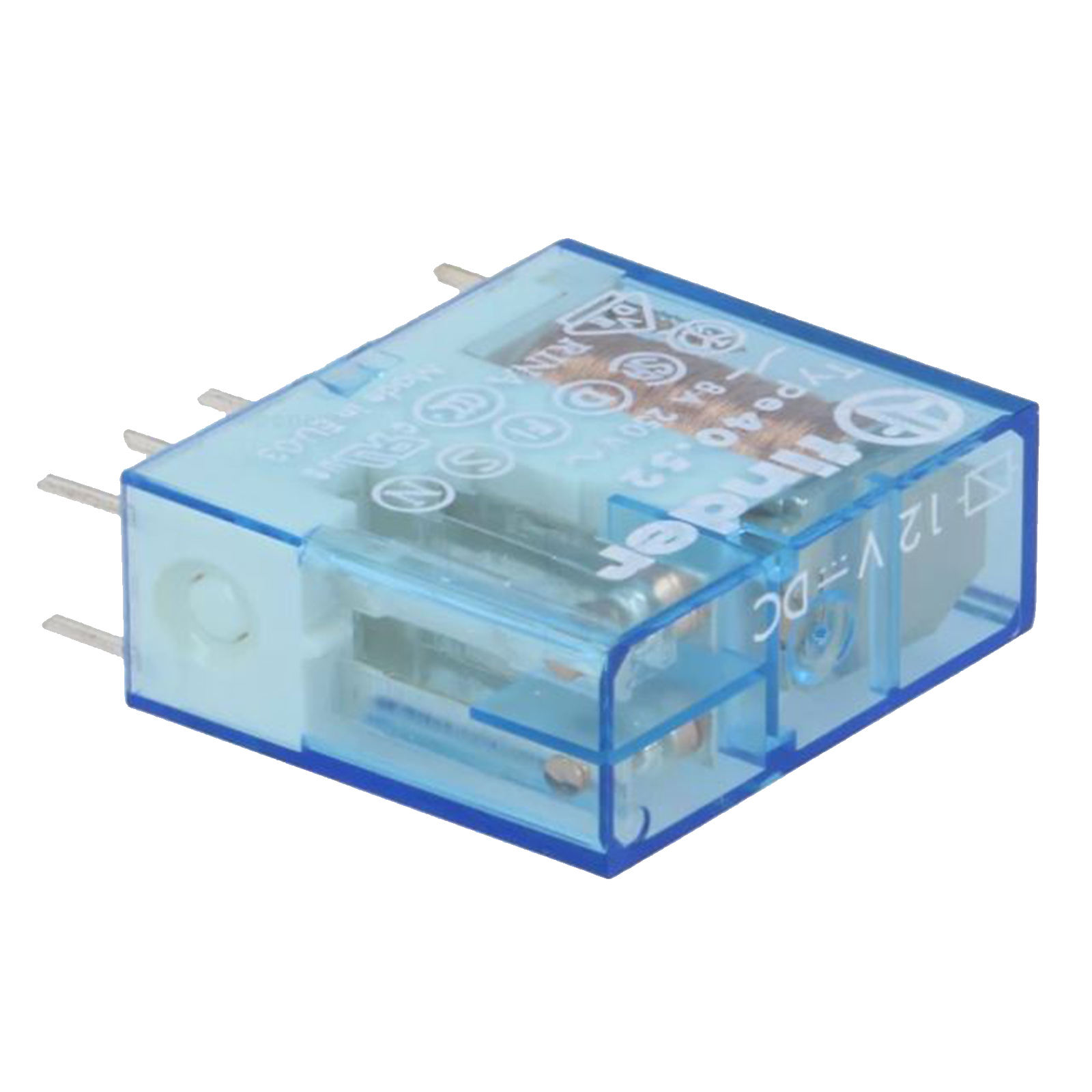 Il mini relè Tipo 40.52 è un relè per circuito stampato ed a innesto su zoccolo Serie 95. Dotato di 2 scambi 8 A su circuito stampato, passo 5.0 mm