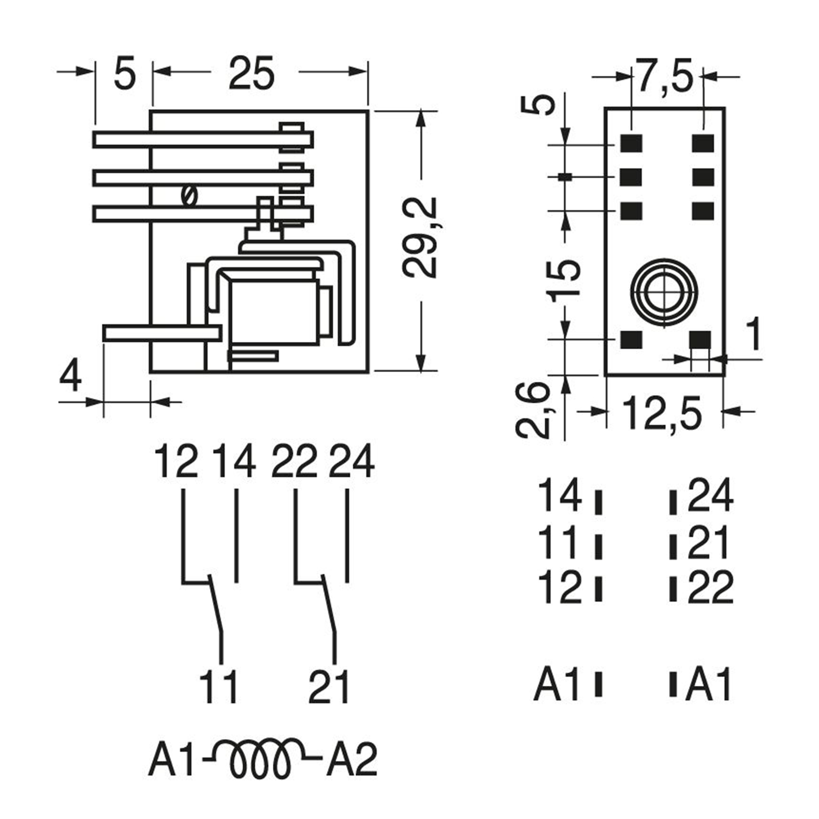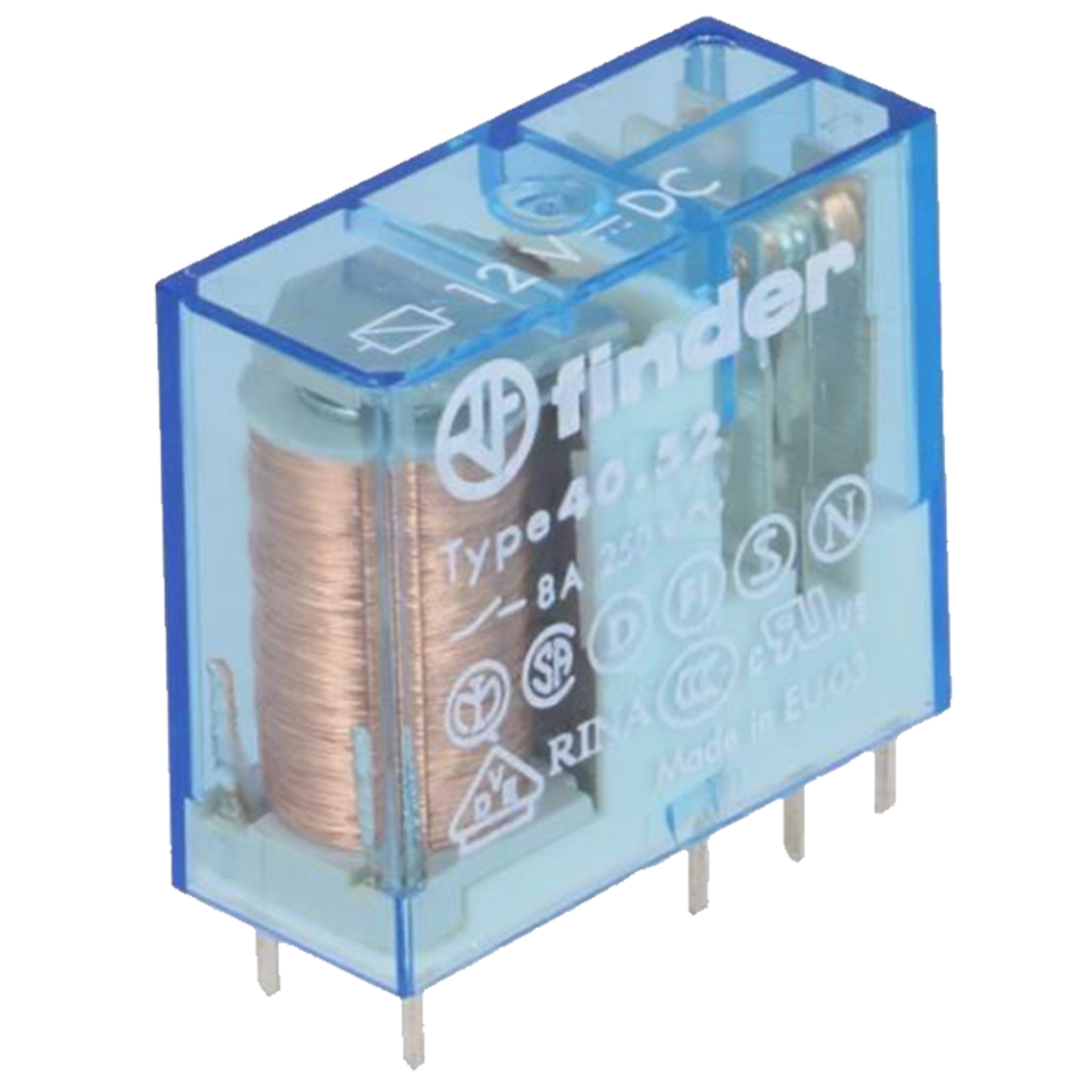 Il mini relè Tipo 40.52 è un relè per circuito stampato ed a innesto su zoccolo Serie 95. Dotato di 2 scambi 8 A su circuito stampato, passo 5.0 mm