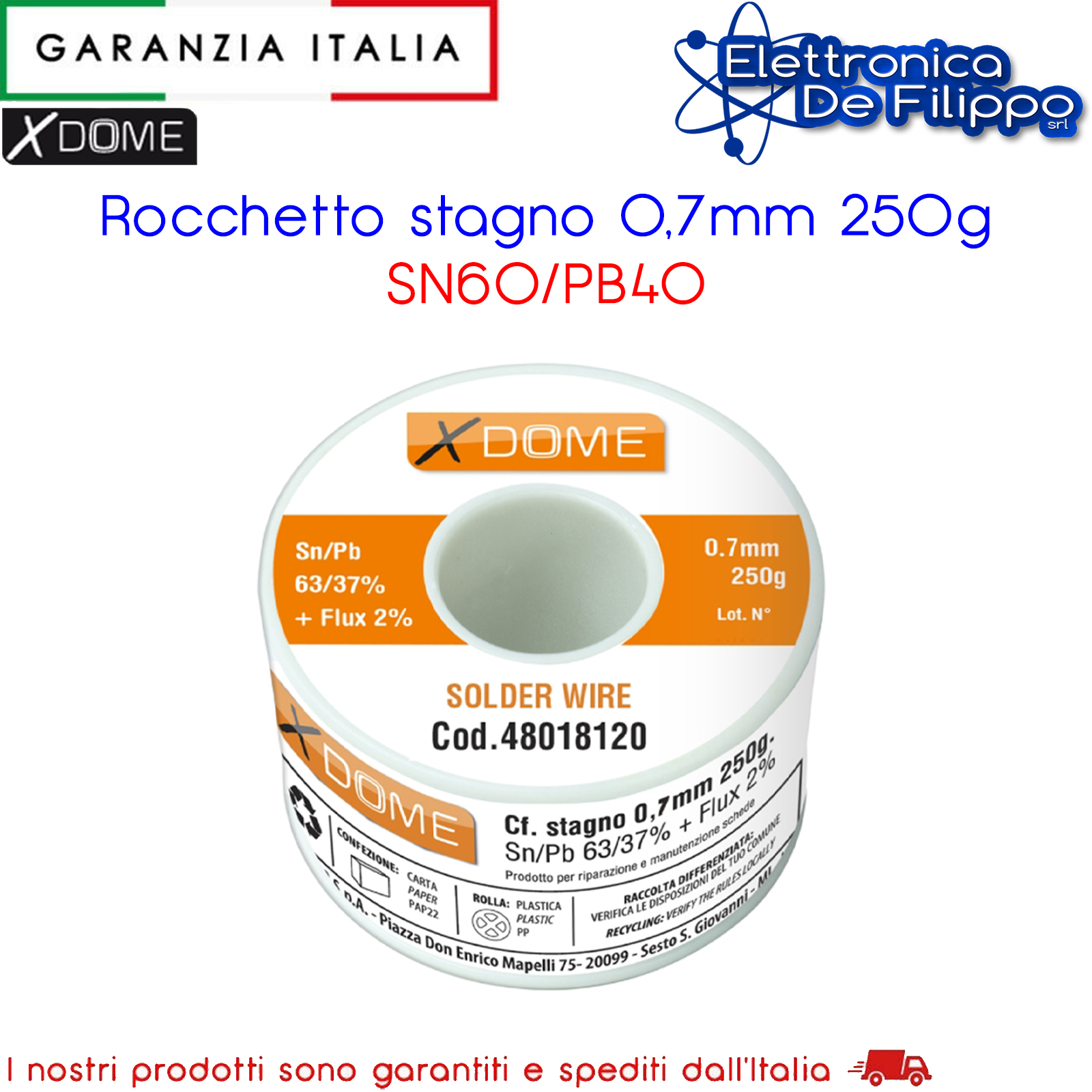 Realizzato con resina e stagno di alta qualità. Con il diametro ridotto è facile controllare in quanto è necessario per la saldatura. Comodo da usare, nessuna combustione e il prodotto è coerente. Buona saldabilità, resistenza di isolamento, non corrosivo. Prodotto professionale adatto a tutte le tipologie di saldature e ottimo per micro-saldature. Punto di fusione (250°C) significa che i fili di saldatura possono essere utilizzati per la maggior parte dei saldatori. Stagno di Alta qualità. Indicato per saldature di componenti elettronici, bricolage, circuiti elettronici, componenti audio e video, telefoni, piccoli e grandi elettrodomestici, strumenti musicali, (chitarre elettriche), giocattoli, cuffie, microfono, laptop, schede pc, TV, drone... e molto altro!