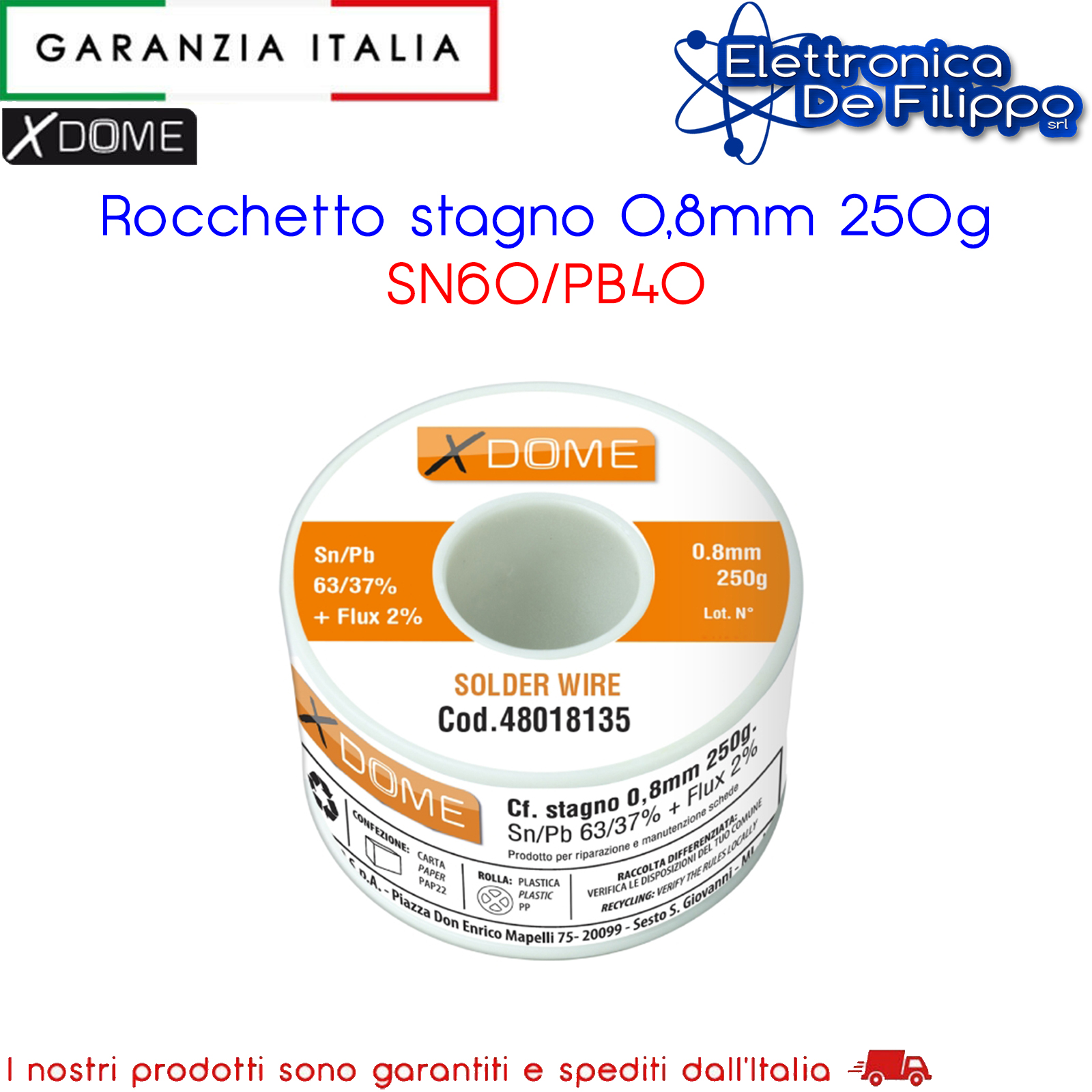Realizzato con resina e stagno di alta qualità. Con il diametro ridotto è facile controllare in quanto è necessario per la saldatura. Comodo da usare, nessuna combustione e il prodotto è coerente. Buona saldabilità, resistenza di isolamento, non corrosivo. Prodotto professionale adatto a tutte le tipologie di saldature e ottimo per micro-saldature. Punto di fusione (250°C) significa che i fili di saldatura possono essere utilizzati per la maggior parte dei saldatori. Stagno di Alta qualità. Indicato per saldature di componenti elettronici, bricolage, circuiti elettronici, componenti audio e video, telefoni, piccoli e grandi elettrodomestici, strumenti musicali, (chitarre elettriche), giocattoli, cuffie, microfono, laptop, schede pc, TV, drone... e molto altro!