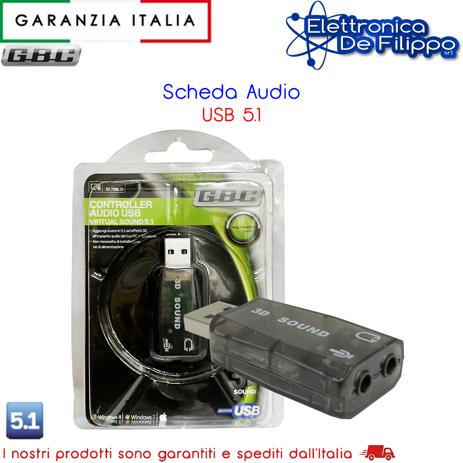 Aggiunge connessioni audio a PC o Mac che ne fossero sprovvisti con grande semplicità, senza bisogno di installazioni o driver. Dispone di ingresso per microfono e uscita per cuffie, e aggiunge effetti virtuali 3D e 5.1 . Windows 7 compatibile.