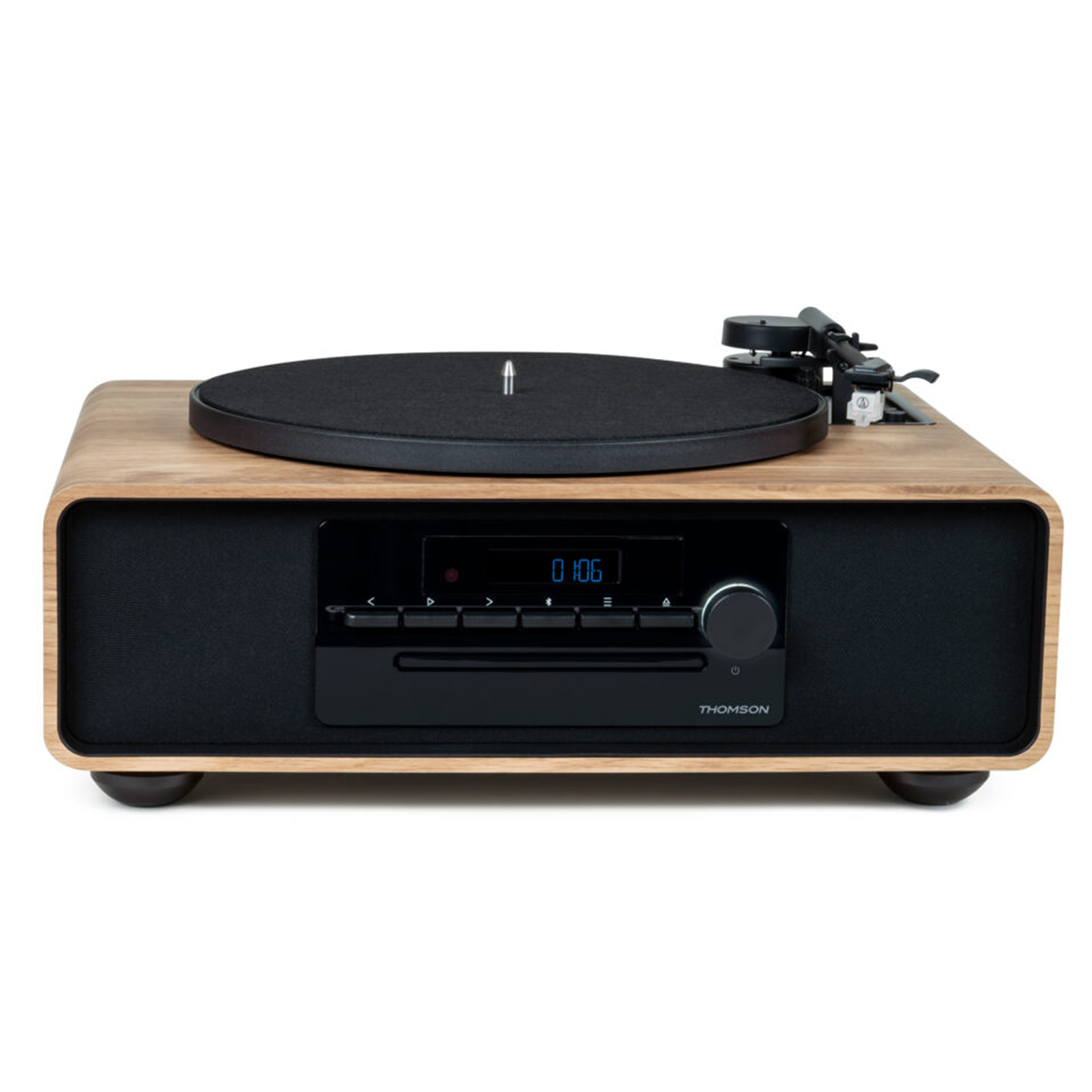 Il Sistema Stereo Hi-Fi MIC300TT Thomson unisce eleganza e versatilità in un unico impianto dal design raffinato in legno chiaro. Con questo sistema puoi ascoltare la tua musica preferita in tanti modi: da vinile (33 o 45 giri), da CD, da chiavetta USB, dal tuo smartphone via Bluetooth oppure tramite radio FM. Con una potenza musicale di 60 W, offre un suono pieno e di qualità, adatto sia per serate rilassate che per momenti di festa.