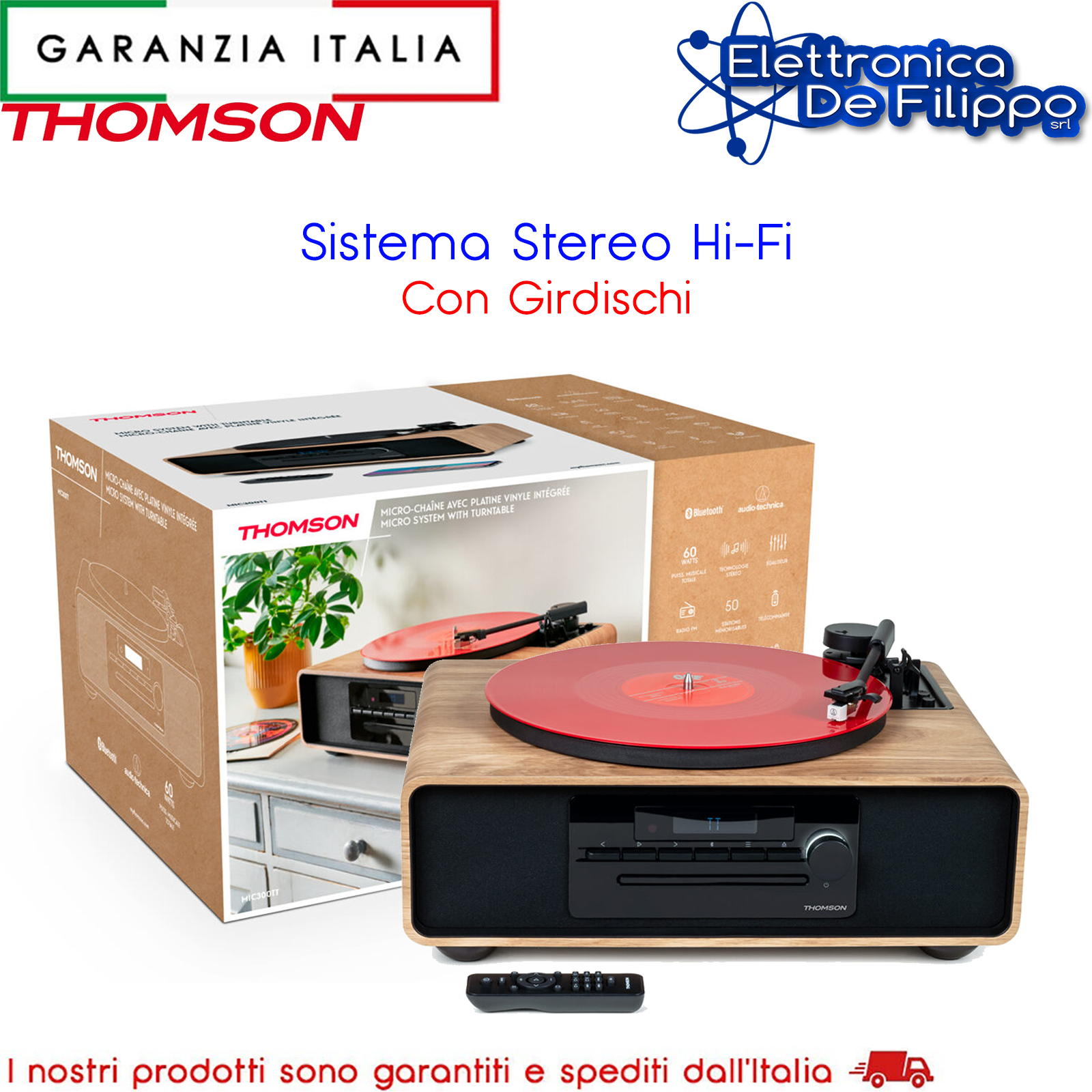 Il Sistema Stereo Hi-Fi MIC300TT Thomson unisce eleganza e versatilità in un unico impianto dal design raffinato in legno chiaro. Con questo sistema puoi ascoltare la tua musica preferita in tanti modi: da vinile (33 o 45 giri), da CD, da chiavetta USB, dal tuo smartphone via Bluetooth oppure tramite radio FM. Con una potenza musicale di 60 W, offre un suono pieno e di qualità, adatto sia per serate rilassate che per momenti di festa.