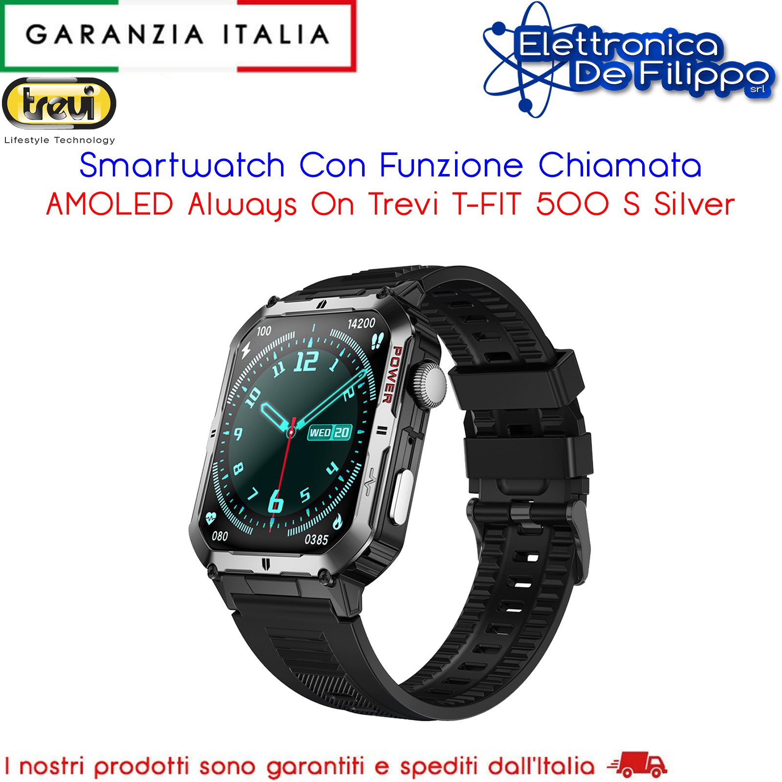 Porta la tua vita al livello successivo con lo Smartwatch con Funzione Chiamata Wireless AMOLED Always On Trevi T-FIT 500 S, l’orologio interattivo che fa molto che limitarsi a segnare l’orario. Con un grande display AMOLED Full touch da 2.06”, ti offre funzionalità avanzate per monitorare il tuo benessere e il tuo allenamento fisico in modo preciso e intuitivo.