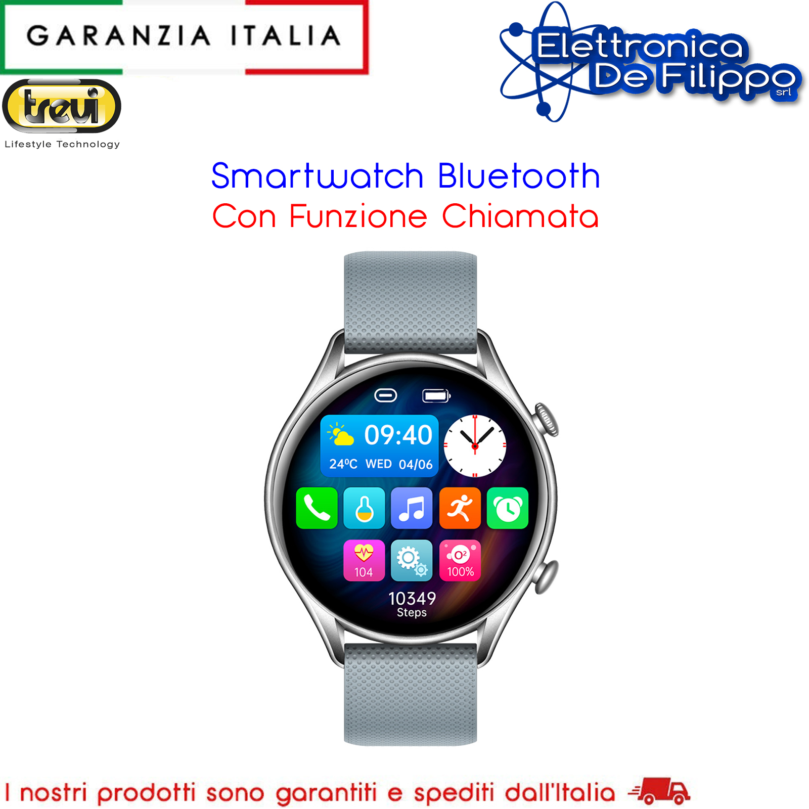 Lo Smartwatch con Funzione Chiamata Bluetooth Trevi T-FIT 280 S CALL è un orologio interattivo adatto al controllo dell’allenamento e dello stato di benessere. Sul grande display full touch da 1.32 pollici, oltre al monitoraggio dei dati relativi all’attività fisica, potrai visualizzare le notifiche di messaggi da social media, avviare chiamate telefoniche e/o rispondere a quelle in entrata grazie al collegamento diretto Bluetooth con il tuo smartphone tramite app dedicata. T-FIT 280 S CALL è capace di monitorare il sonno e rileva frequenza cardiaca, pressione sanguigna, ossigenazione del sangue, passi, calorie bruciate e distanza percorsa. Completano la dotazione la possibilità di impostare fino a cinque allarmi/promemoria e lo scatto della fotocamera con movimento del polso, la funzione Richiamo Smartphone in caso di smarrimento a breve distanza, un cronometro, un timer e un avviso di sedentarietà e idratazione attivabili da app. Per effettuare chiamate telefoniche direttamente dallo smartwatch di Trevi, è possibile utilizzare la tastiera virtuale per comporre i numeri telefonici e parlare ed ascoltare da speaker e microfono integrati nella cassa in metallo. Con un grado di protezione IP67, lo Smartwatch con Funzione Chiamata Bluetooth Trevi T-FIT 270 S CALL è resistente all’acqua ed è alimentato da una batteria interna al lithio ricaricabile attraverso connettore magnetico USB.