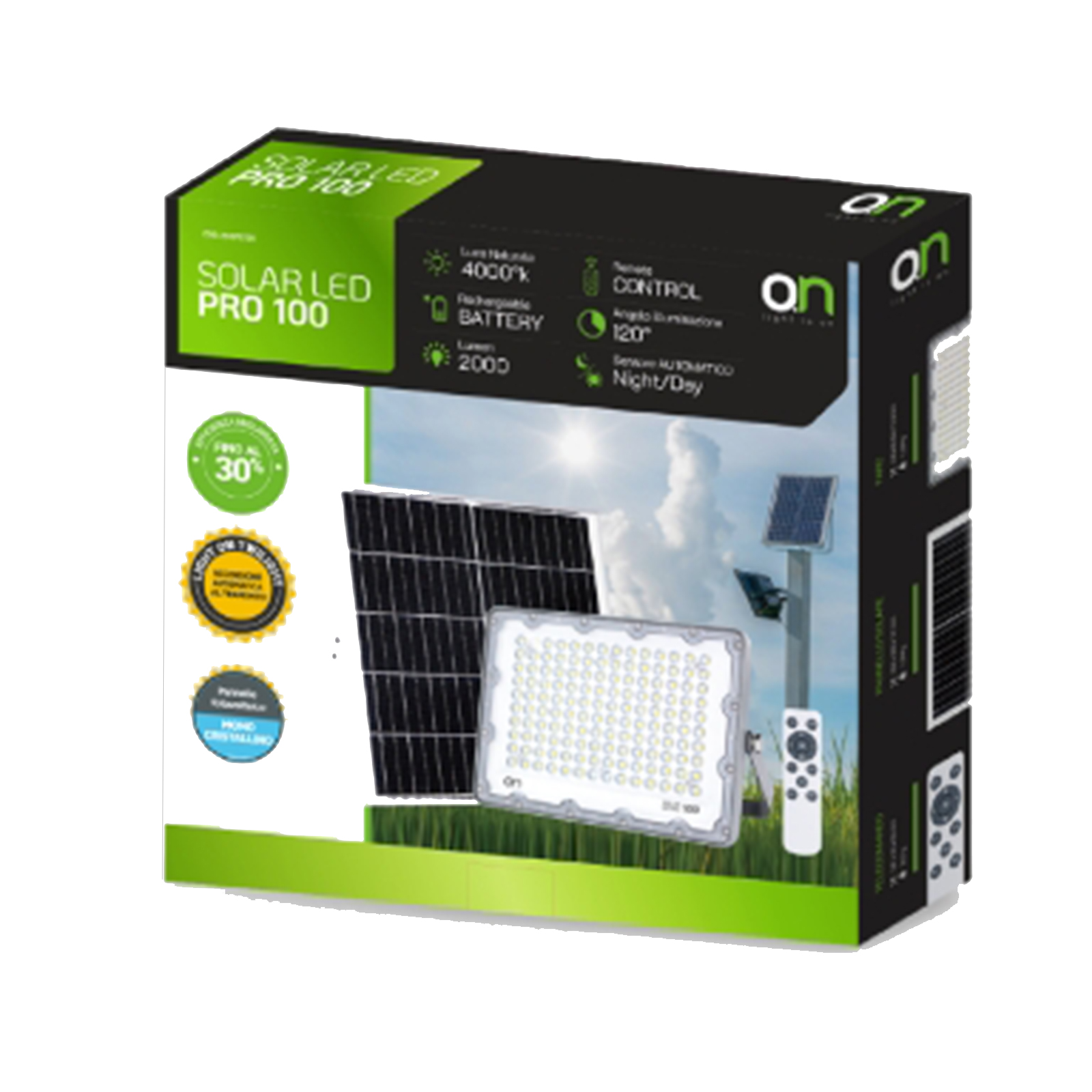 SOLAR LED PRO 100- FARO LED SOLARE DA ESTERNO 2000 lm CON PANNELLO