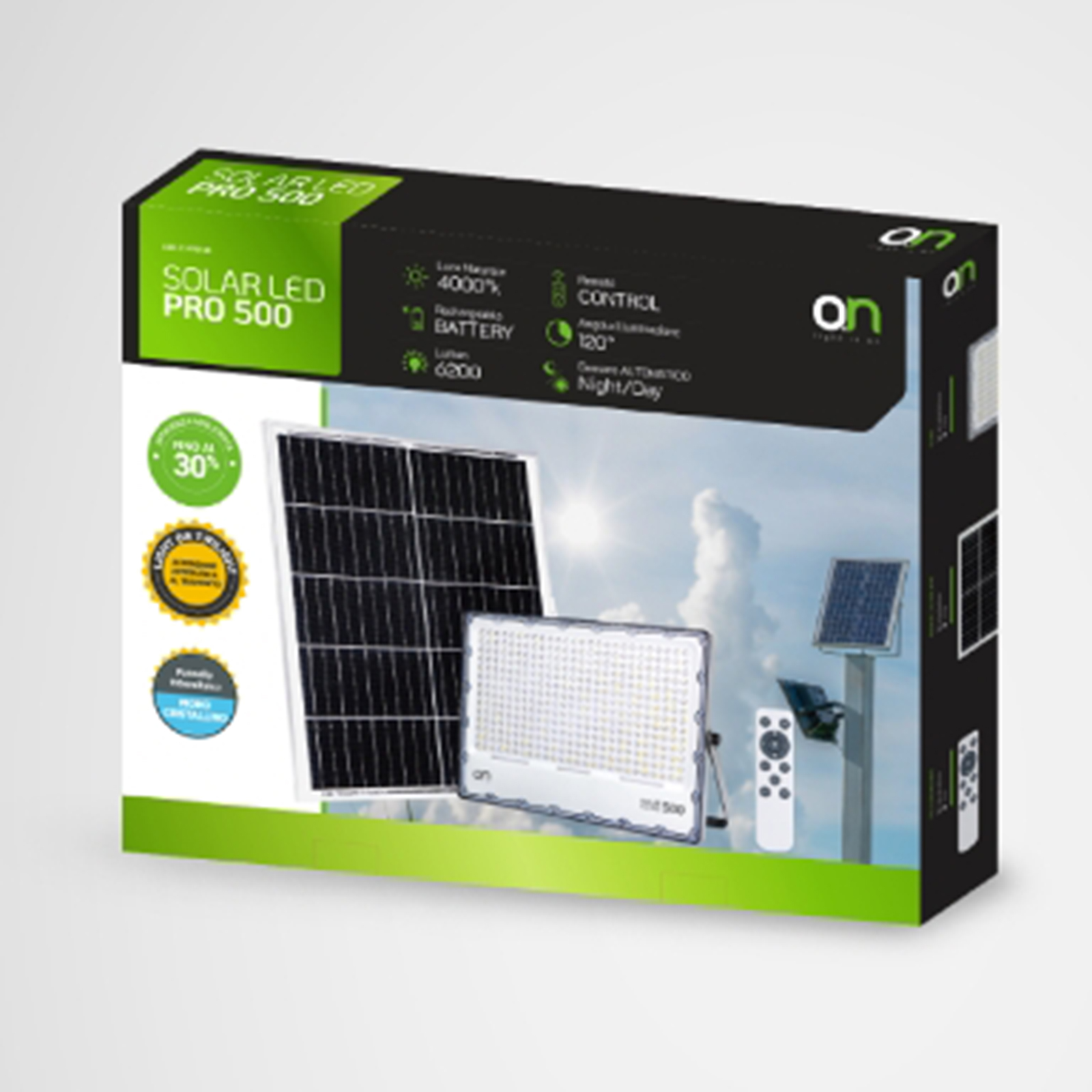 SOLAR LED PRO 500 - FARO LED SOLARE DA ESTERNO 6200LM CON PANNELLO