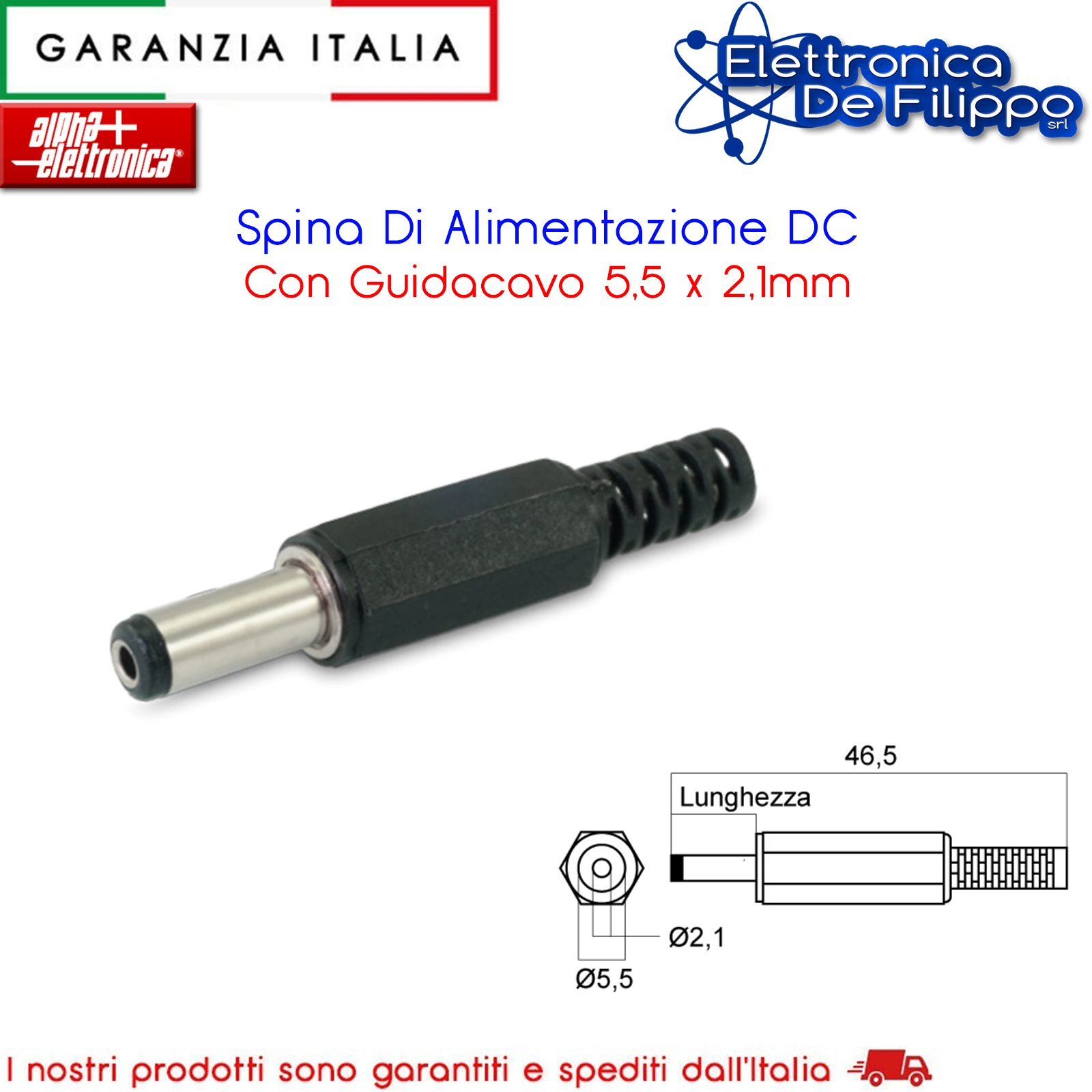 Spina Di Alimentazione DC Con Guidacavo 5,5 x 2,1mm
