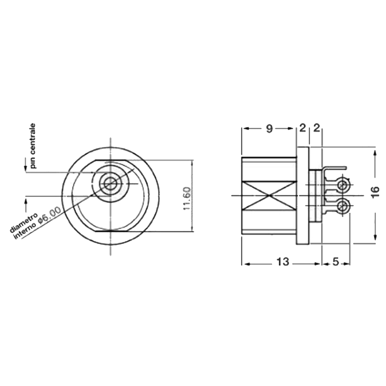 Spina Alimentazione DC Da Pannello 5,5 x 2,1
