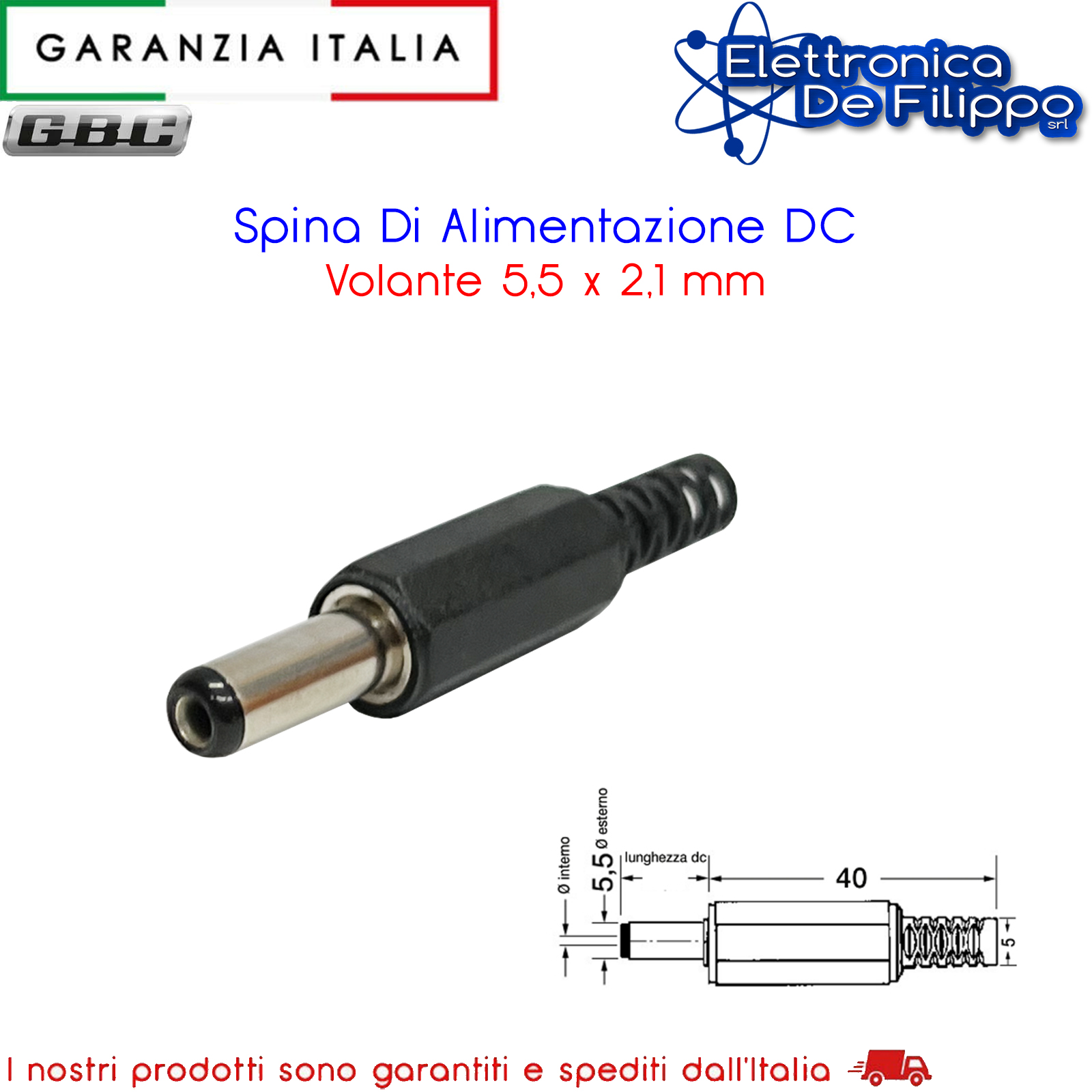 Spina Di Alimentazione DC Volante 5,5 x 2,1 mm