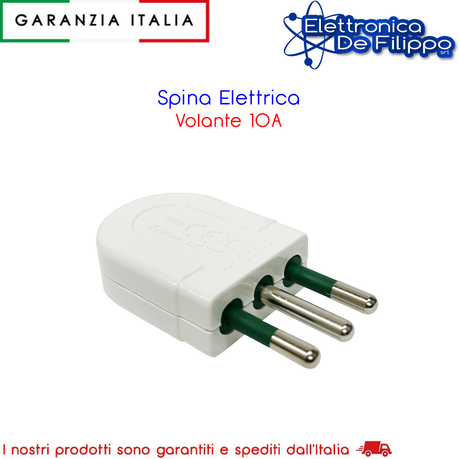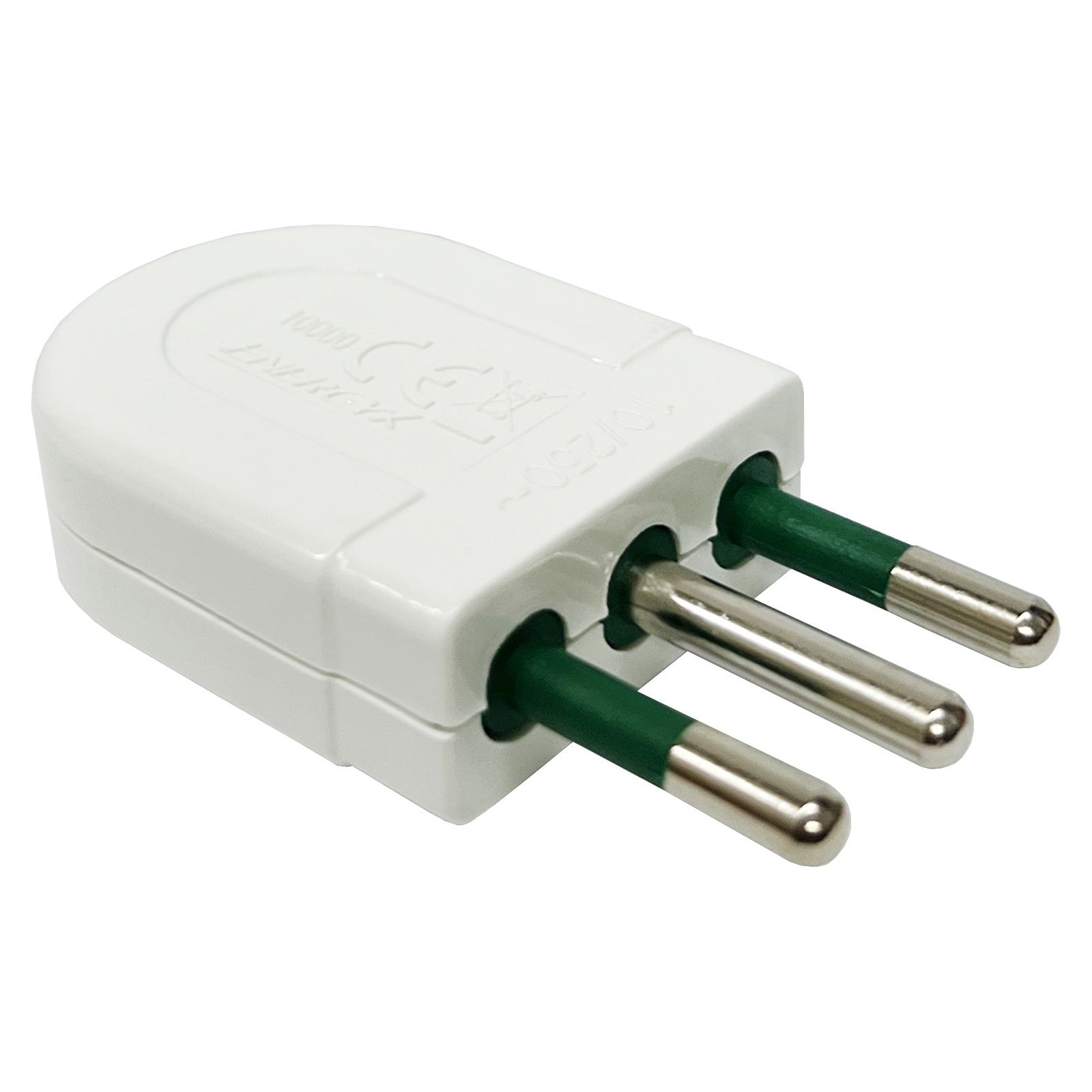 Spina di connessione 10A 2P+T, alveoli in ottone schermati e contatti a vite. Carico Max 1500W