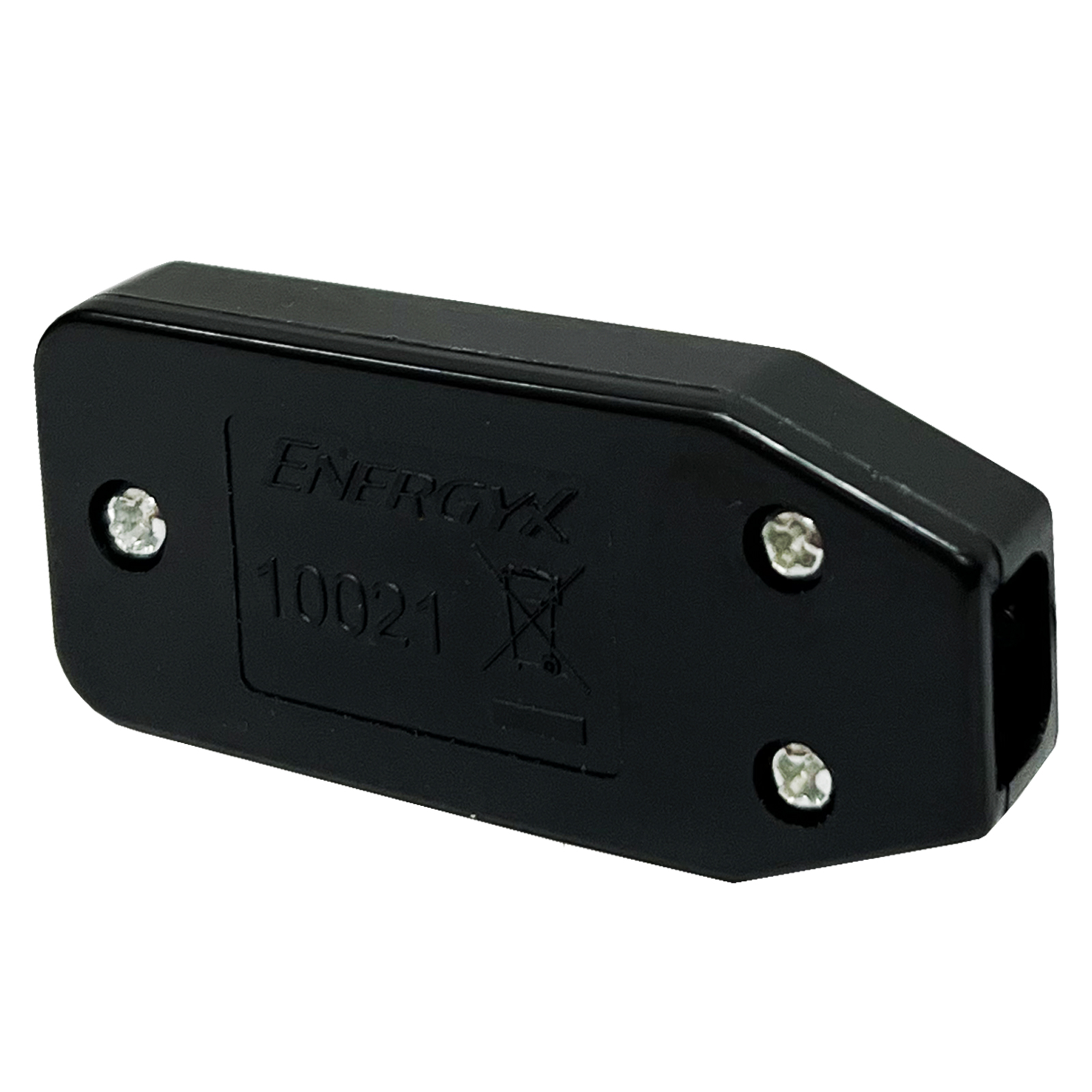 Spina di connessione piatta 10A 2P+T, alveoli in ottone schermati e contatti a vite. Carico Max 1500W